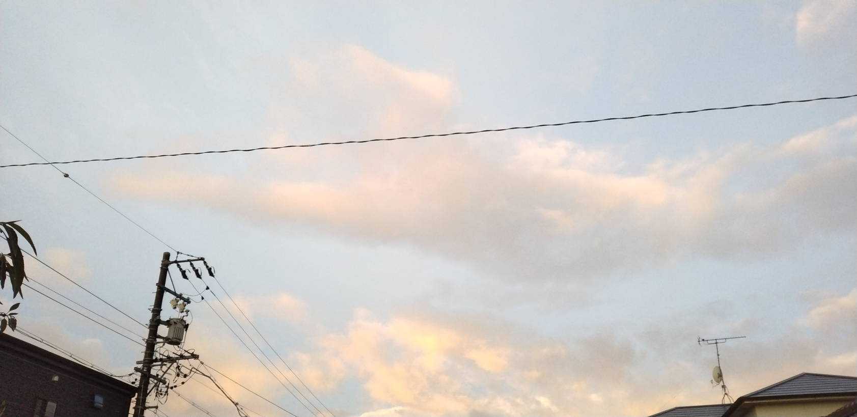 / 一時雨 (最低気温13℃ 最高気温20℃)今日の天気は晴れたり曇ったりの天気で一時小雨が降りました。あまりいい天気ではなかったので、買い物に行った以外は家の中で過ごしています。明日も晴れたり曇ったりの一日になりそうです。朝、6時半頃の空。 雲が少し赤く染まっています。 休日なのでご近所は静かです。 世間は3連休中ですが、我が家は息子が土曜と月曜が通常出勤なので休みは日曜だけです。ーーーーーーーーーーーーーーーーーーーーーーーーーーーーーソラニャン、猛暑が続いていた夏場は腰のあたりが少し痩せてましたが、最近腰のあたりを触ってみたら少し肉がついてきたように感じました。 試しに体重を測ってみたら 4.8kgで、夏場と変化ありませんでした。 太ったように感じたのは毛替わりのせいかも?? ソラニャン、今日もコタツの中で寝ています。猫ベッドの縁に顎を載せています。 コタツをセットしてからは夜もここで寝るようになりました。ーーーーーーーーーーーーーーーーーーーーーーーーーーーーーーー今日もスーパーの焼き芋を買ってきました。 形の良いのはお母さんに持っていかれました。以 上