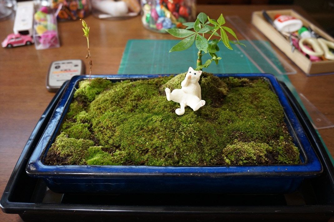 苔の種類を統一し、100均観葉植物を植えてみました。根付いてくれるか心配です。