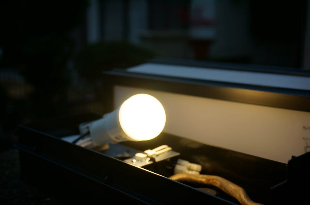 LEDの素子が並んでいる姿を想像していましたが、LED電球がソケットにねじ込まれているだけです。