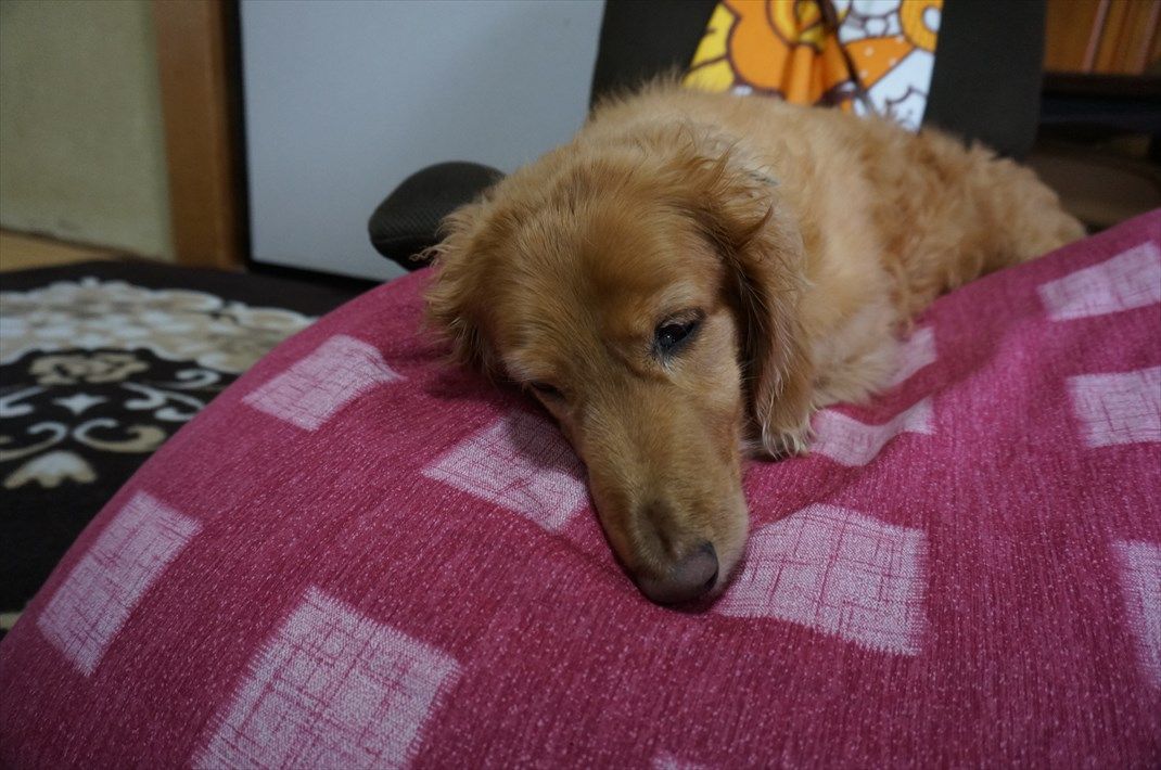 レオワン、一日中寝てばかり↑ では運動不足になるので夕方散歩に行きましたが、暑いので近所の電柱まで行ってすぐに帰ってきました。