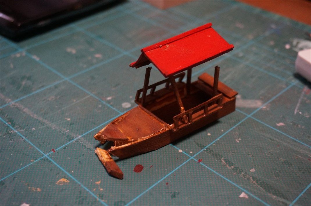 完全に接着剤が乾かないうちに水に浮かべたのでバラバラになってしまいました。