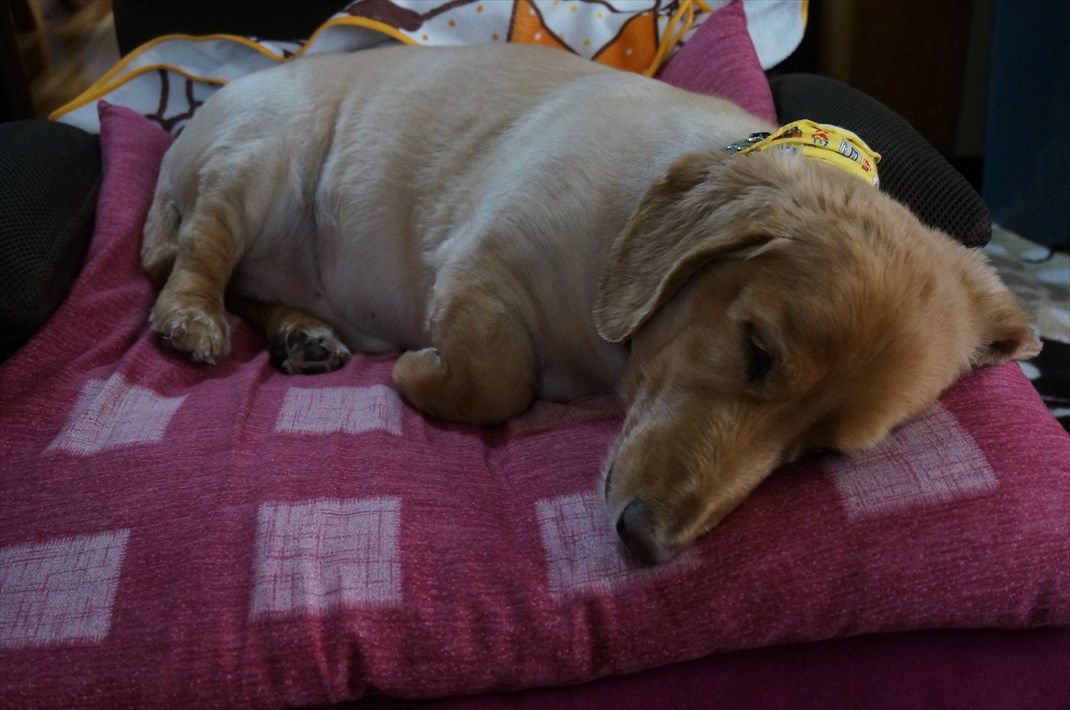 ワンニャン。今日もエアコンの効いた部屋で寝ています。