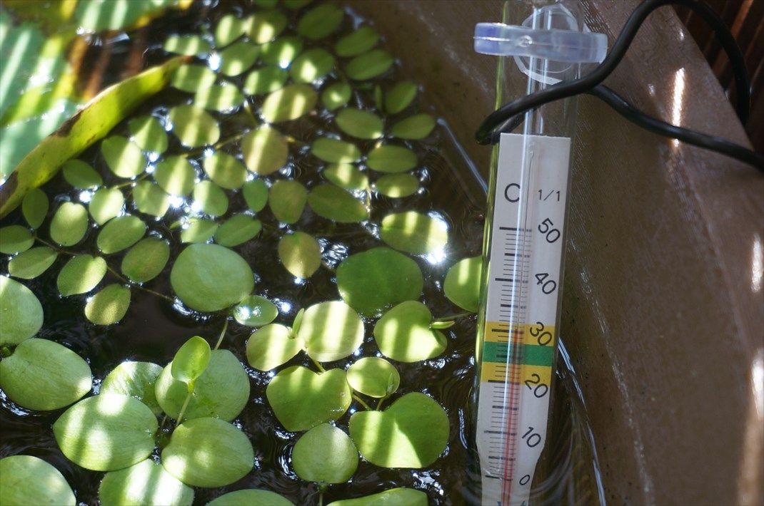 スイレン鉢の水温も31度くらいを指しています。(昨日33度)