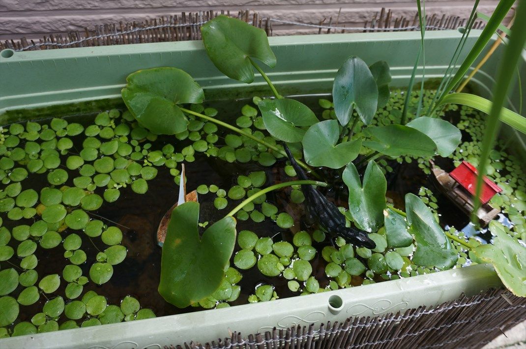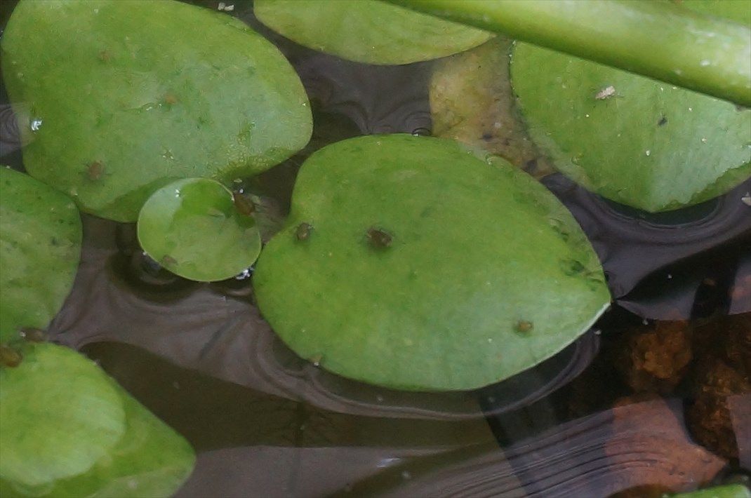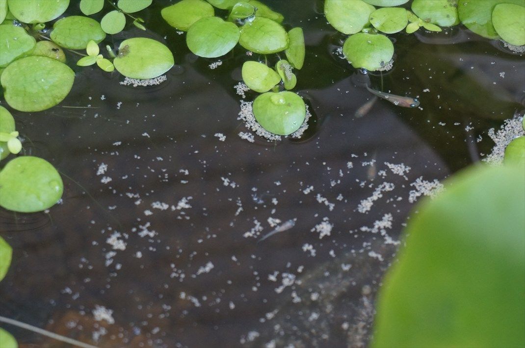 よーく見ないとただの黒い点にしか見えません。アブラムシ?がたくさんついている浮き草から優先的に間引きました。