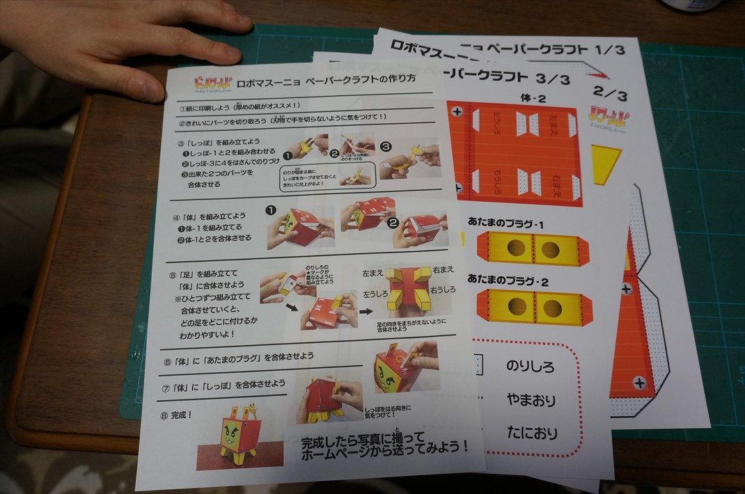 パーツを印刷したA4用紙が3枚と 作り方が1枚です。