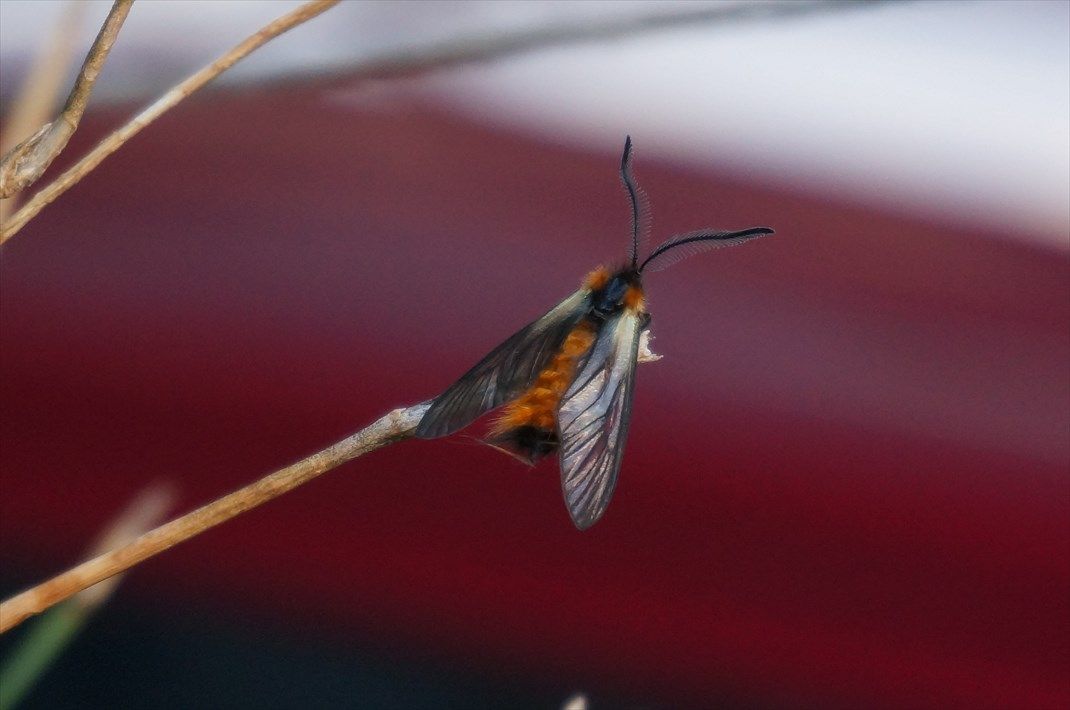 庭の植木鉢を見ていたら、オレンジ色が綺麗な蛾?を見つけました。