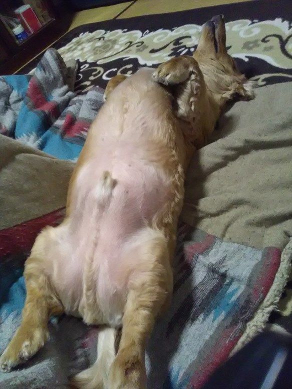 今日も寝てばかりいるレオワン、ひっくり返って寝てました。