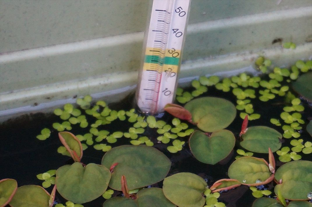 日中暖かく、メダカ水槽の水温が20度ありました。