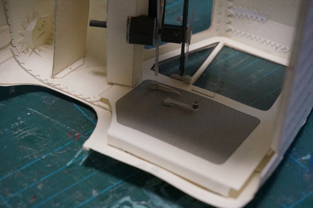 運転席の下側から、完成したパーツを接着します。