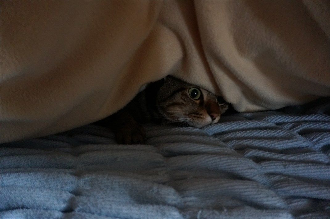 ソラニャン、お母さんのベッドの中に入って寝ています。
