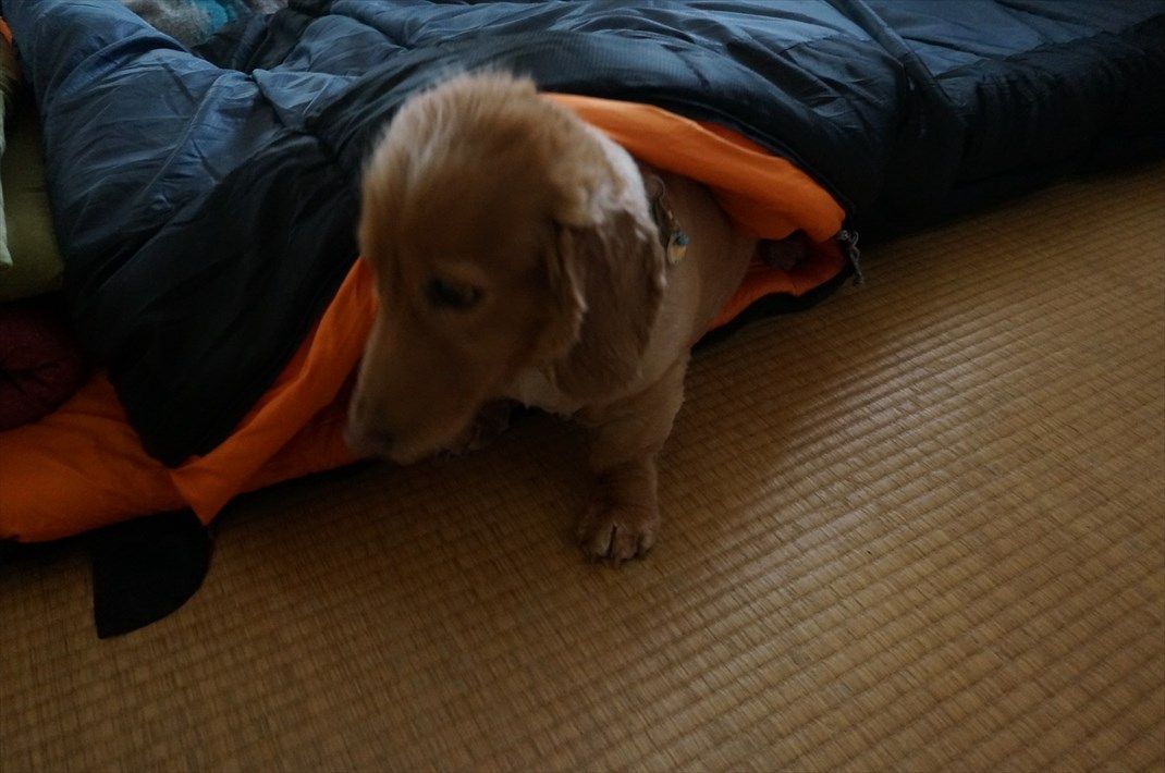 防災用に買った寝袋は、普段お昼寝用に使っています。