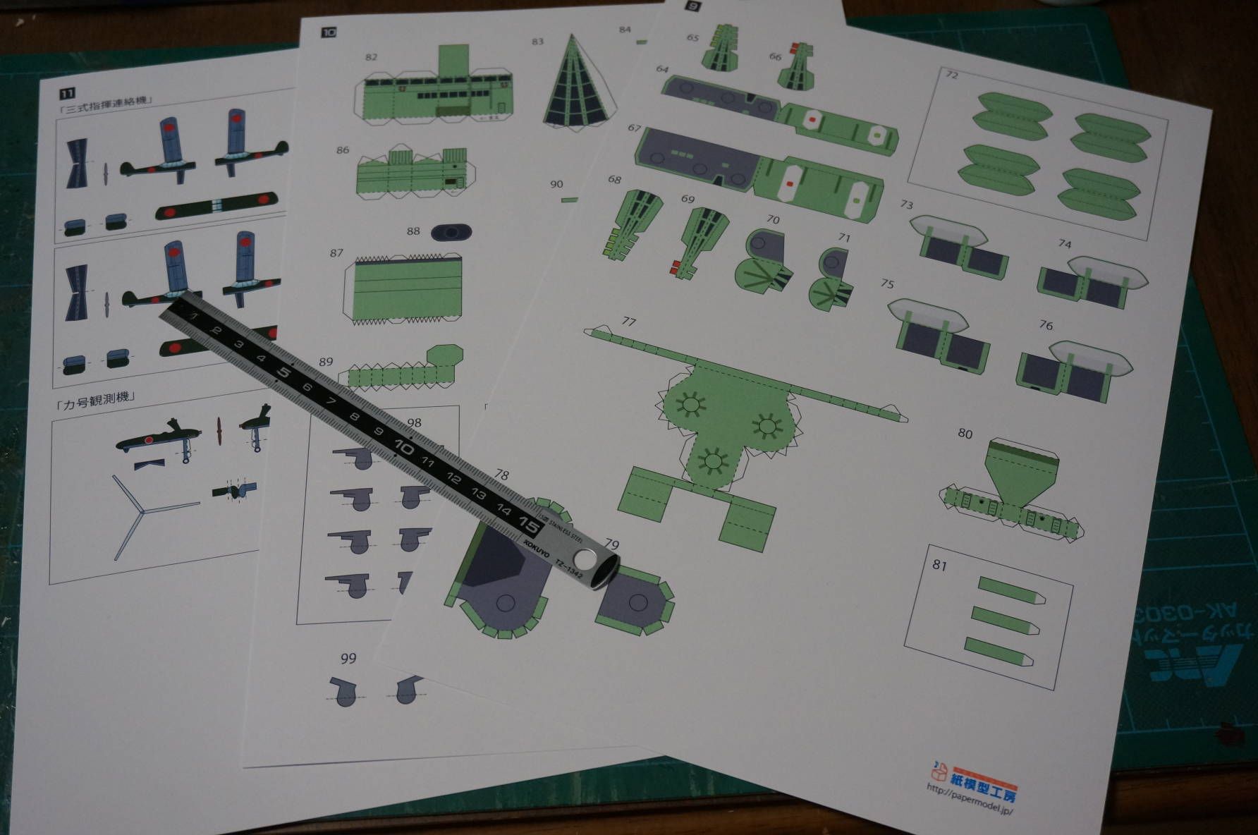 今日は、”ペーパークラフト(あきつ丸)ステップ5 艦橋・艤装をつくる。” を途中まで作りました。