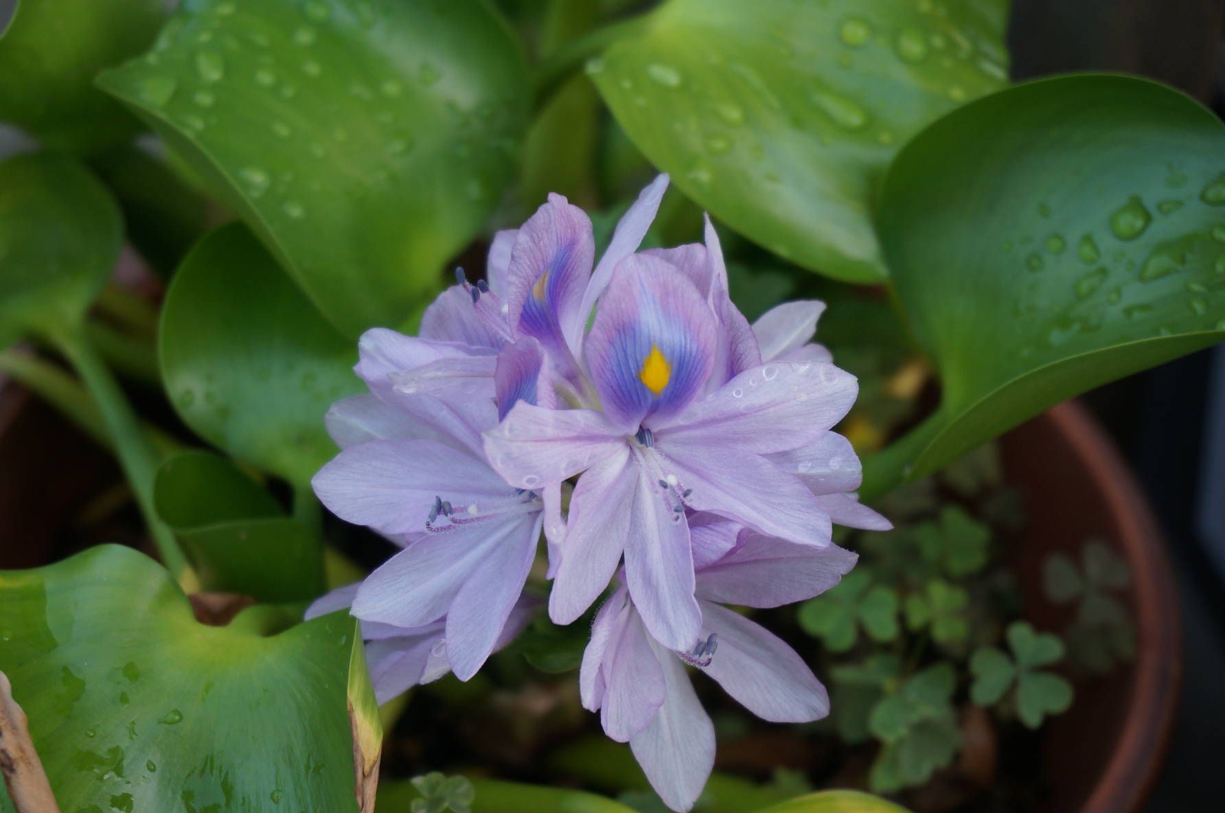 ホテイアオイは、植木鉢に植えたものですが、ちゃんと花がさくんですね。