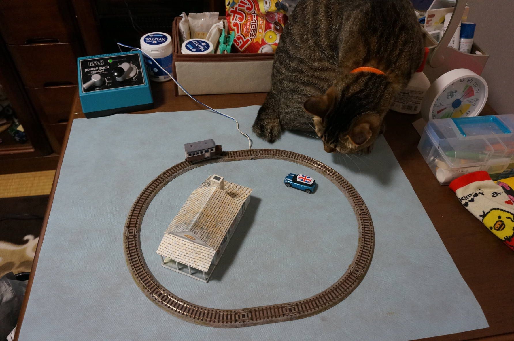 ソラニャン、昨日は、遠いところから走る気動車を眺めていましたが、今日は机の上に上がり込んでここまで接近しました。