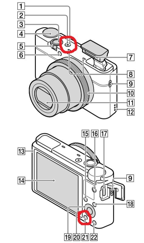 カメラの電源は、下図の1番と2番で示す電源ボタンで入り切りするのですが、電源が切れていても 21で示す再生ボタンを押すだけでカメラの電源が入り再生画面になりました。