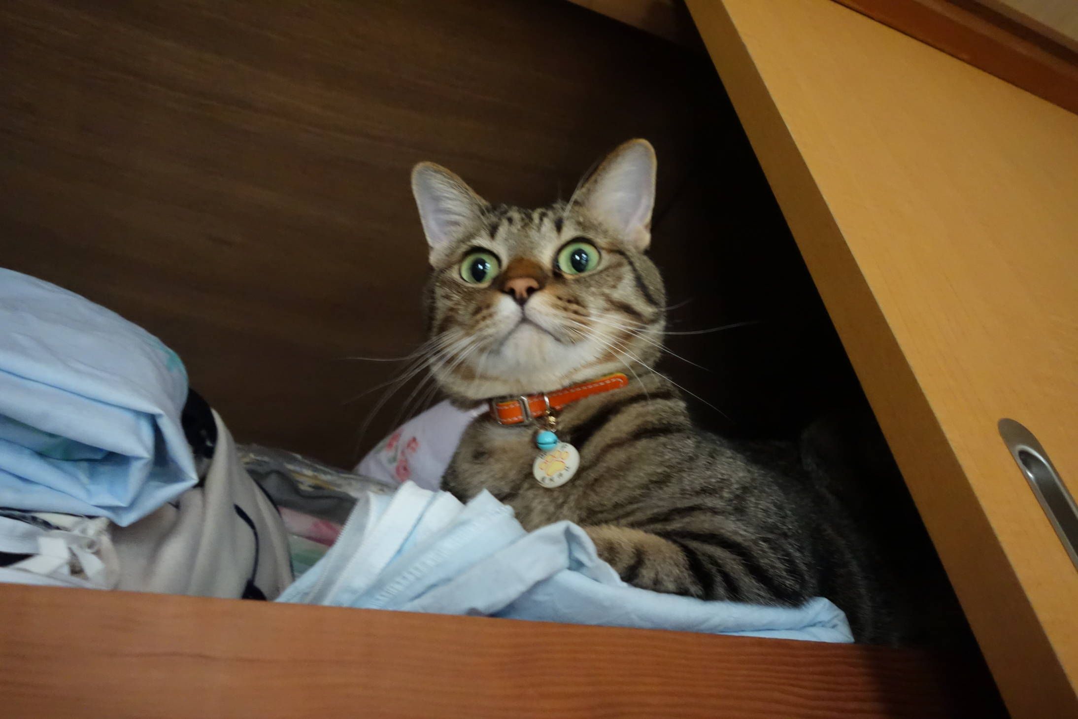 ソラニャンすっかり元気になって押し入れの一番上に入り込んでいました。