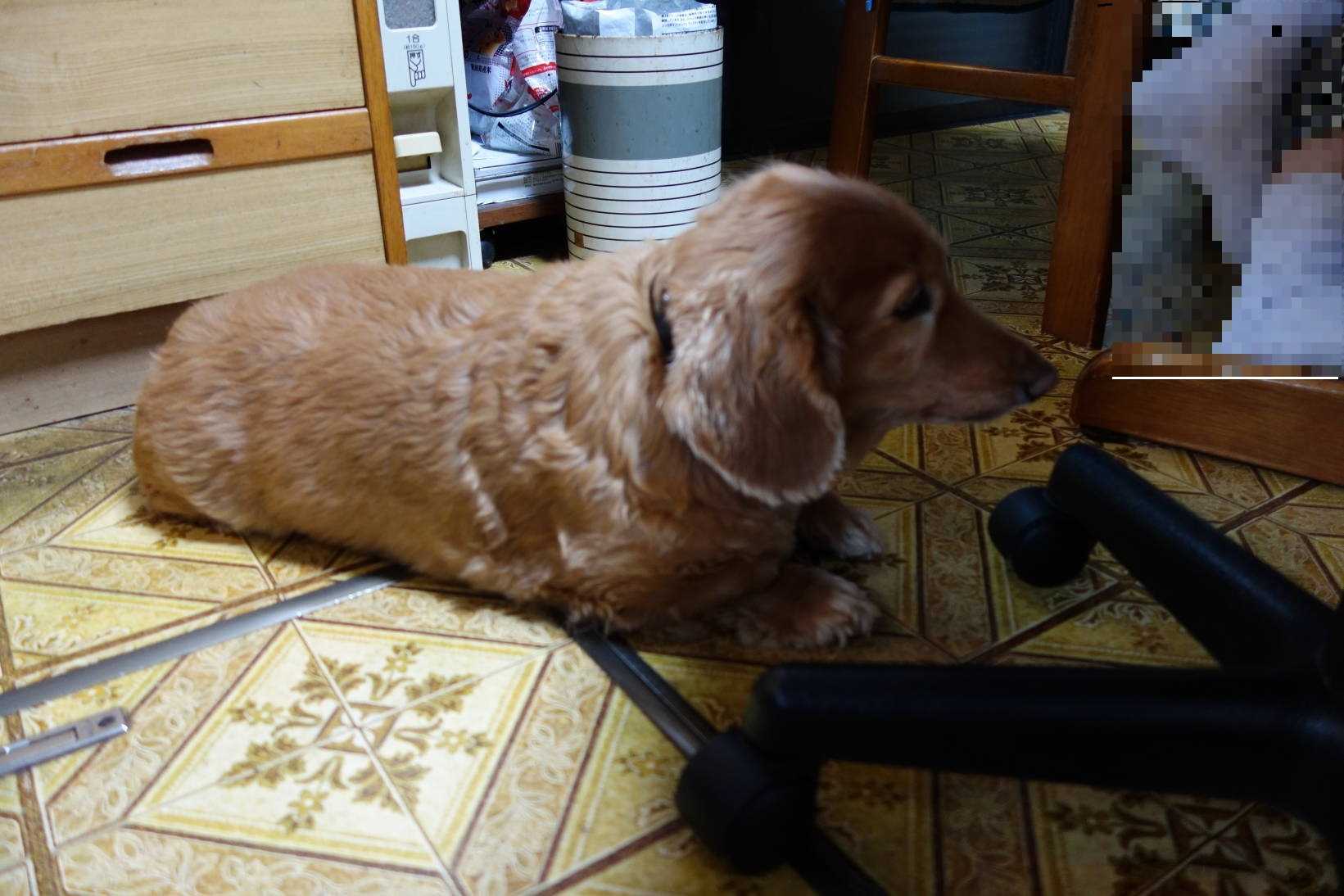 レオワンは、ご飯の準備が出来るまで台所のテーブルの下で待機しています。