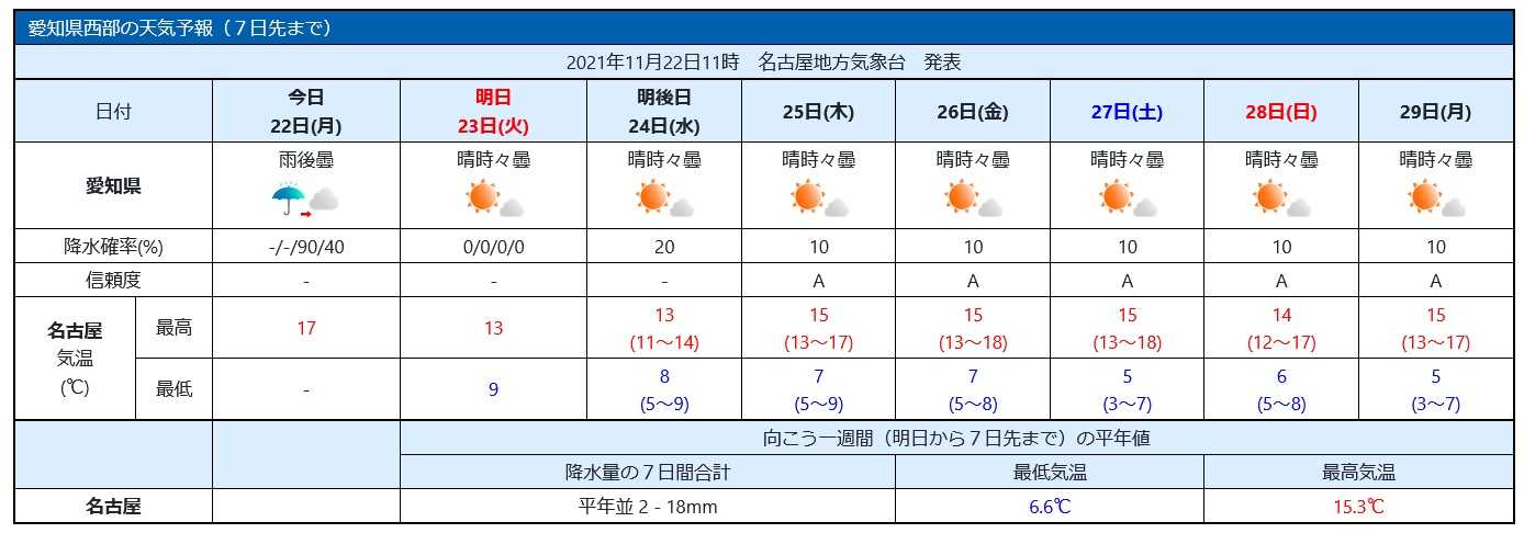 こちら地方の週間天気予報(気象庁データをコピー)