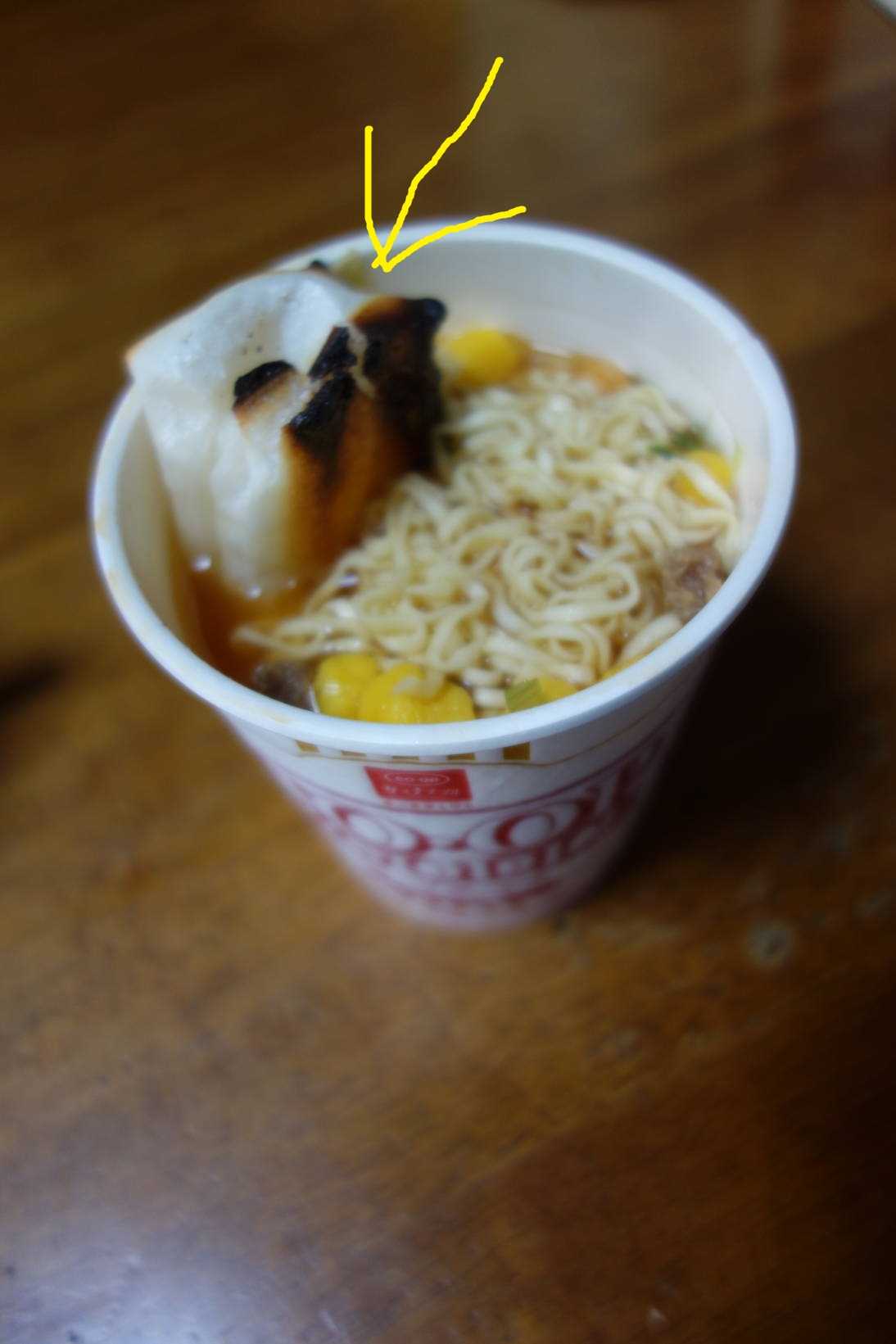 生協と日清製粉がコラボして作ったカップ麺に焼いたお餅を一つ投入しました。