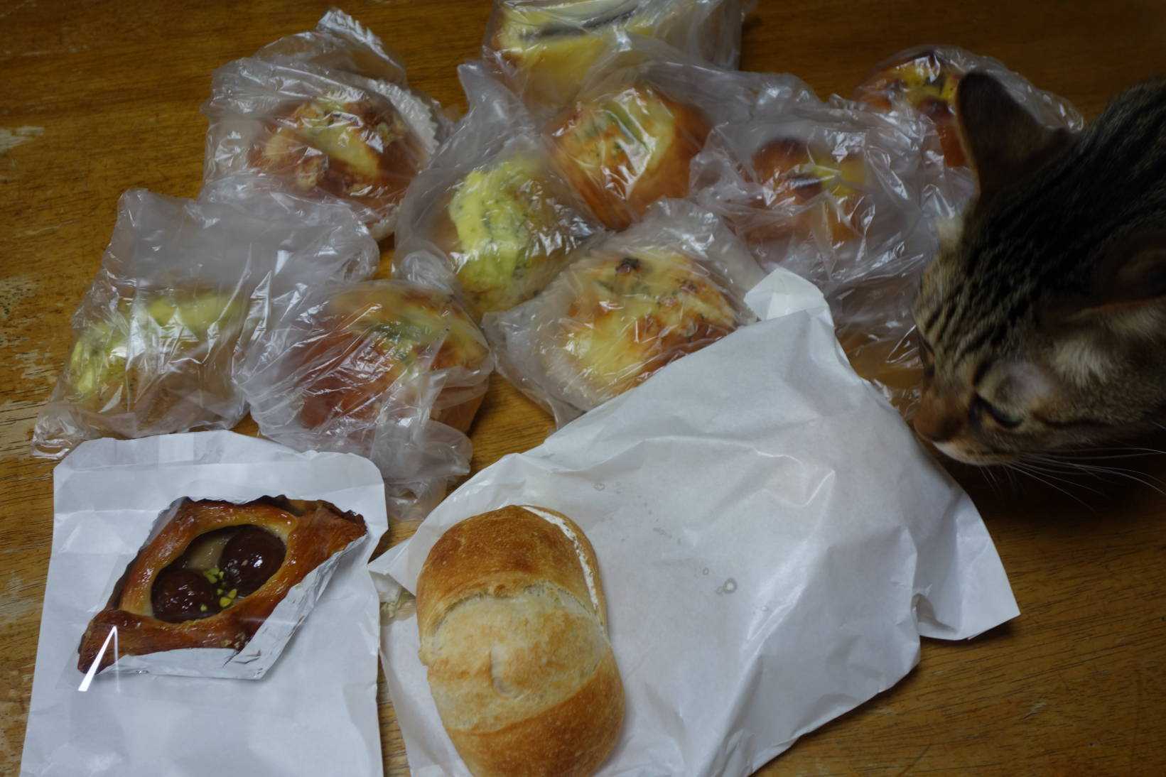 ソラニャンが匂いを嗅いでいるのはフランスパンにクリームを挟んだものです。
