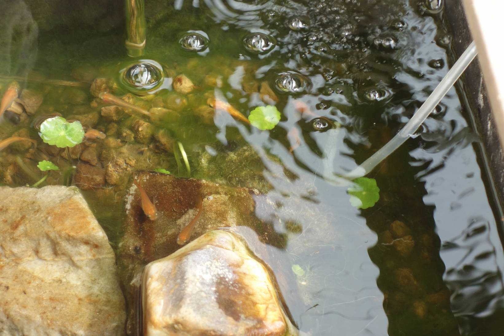 メダカの動きが活発になってきたので、少しだけエサをあげました。
