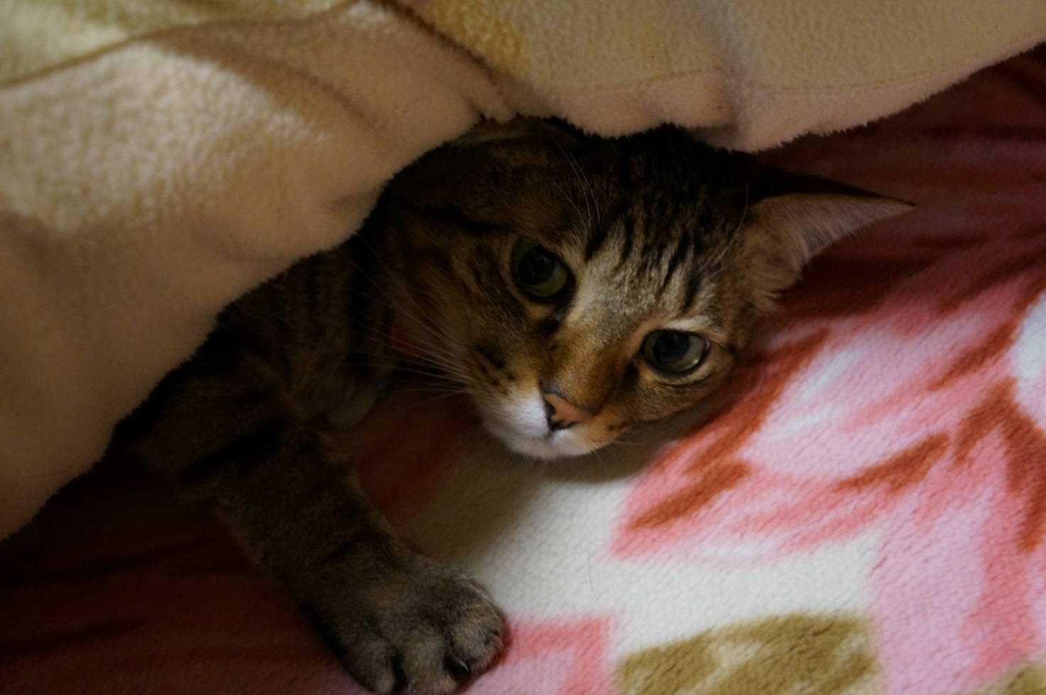 昨晩は、息子の布団に潜り込んでいたようです。