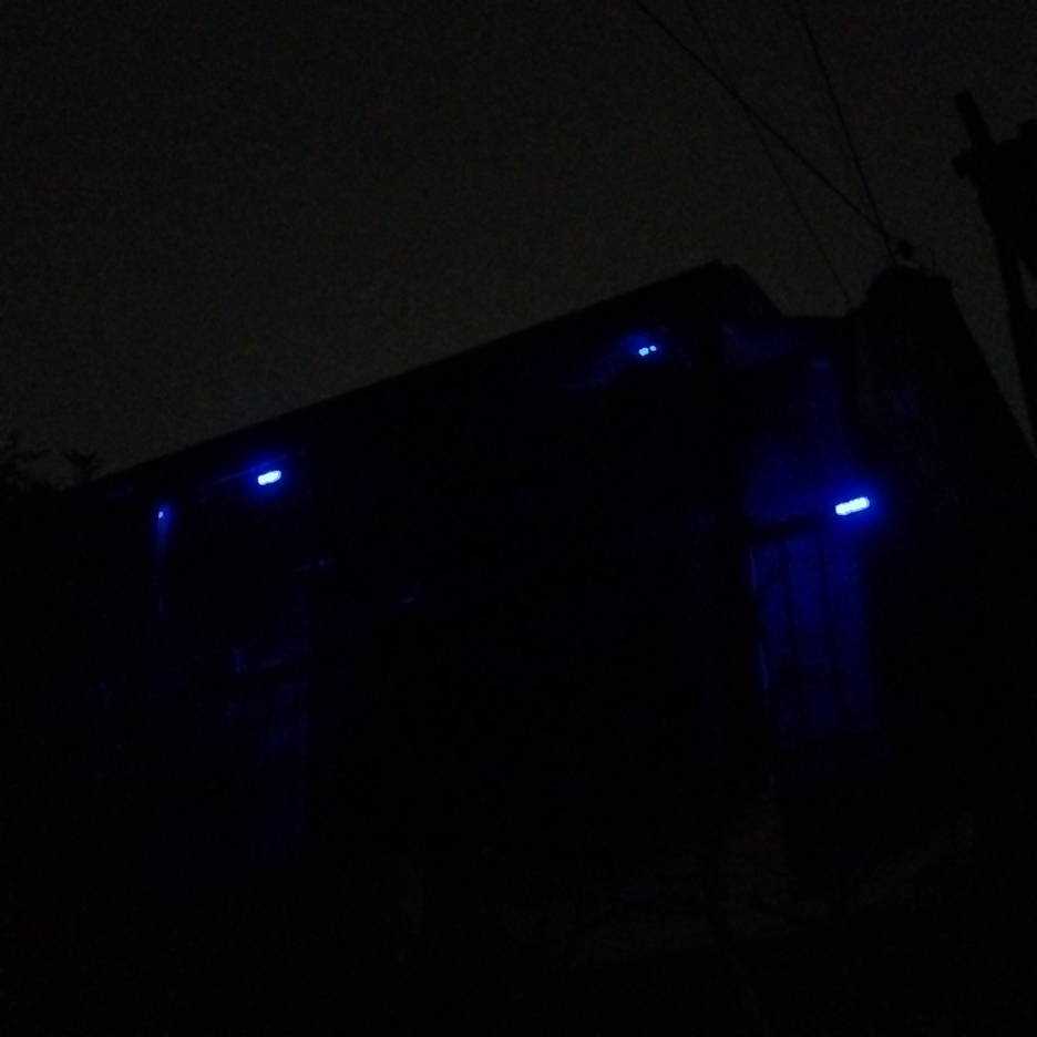 長さ10cmの青色LEDテープを4つ手配して3つを屋根に、一つを手摺りに貼り付けました。