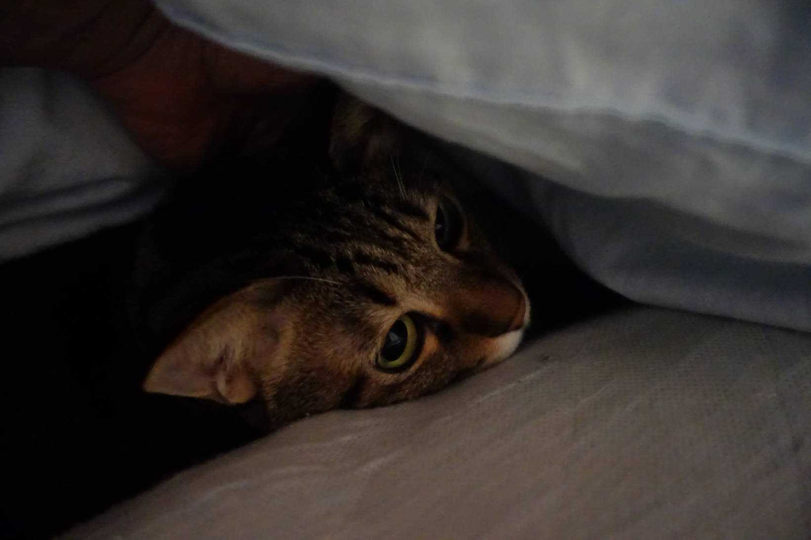 ソラニャンの姿が見えないので探したら息子の布団の中で寝ていました。