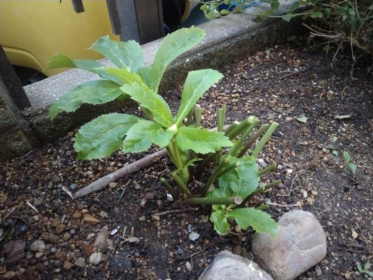 庭のクリスマスローズの古い葉の下に新しい葉が見えたので古い葉を全部切ってしまいました。