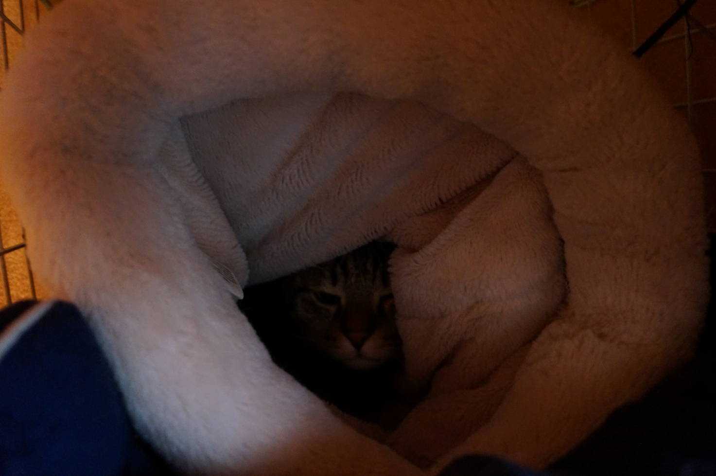 買い物中、猫ベッドの中で寝ていたソラニャン。