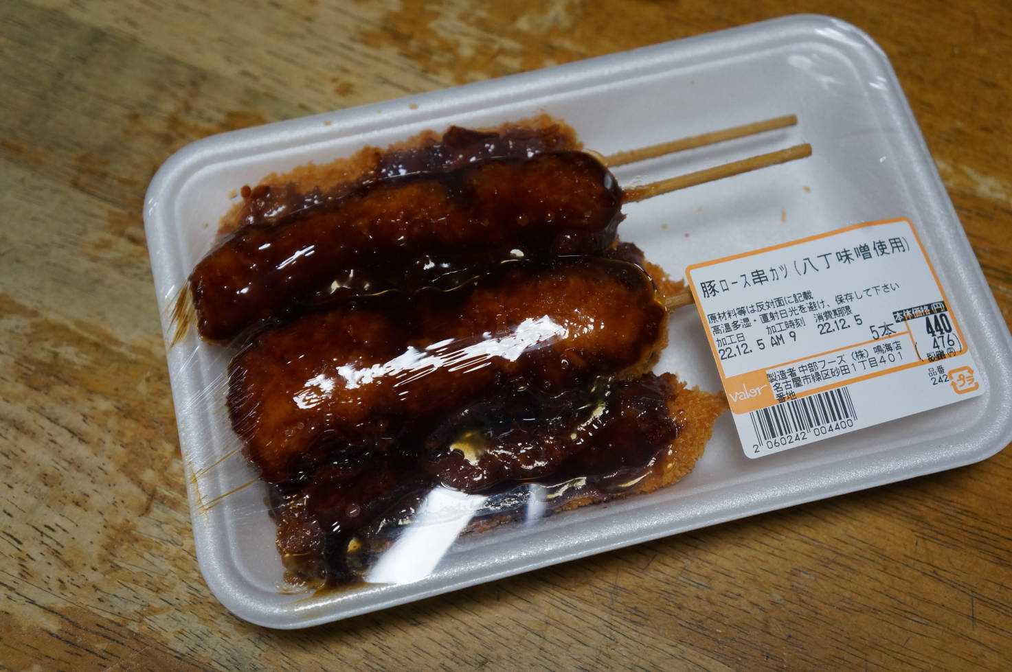 お昼のおかずを買ってきました。(豚ロース串カツ 八丁味噌使用)