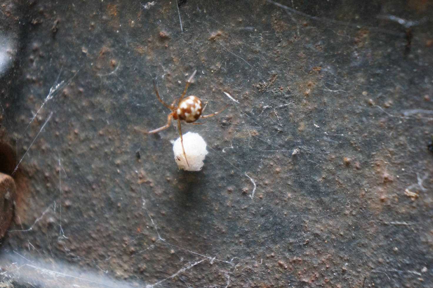 昨日、蜘蛛の卵のうを見つけた水道メーターのボックスを開けてみたら新しい卵のう2つと親らしき蜘蛛がいました。