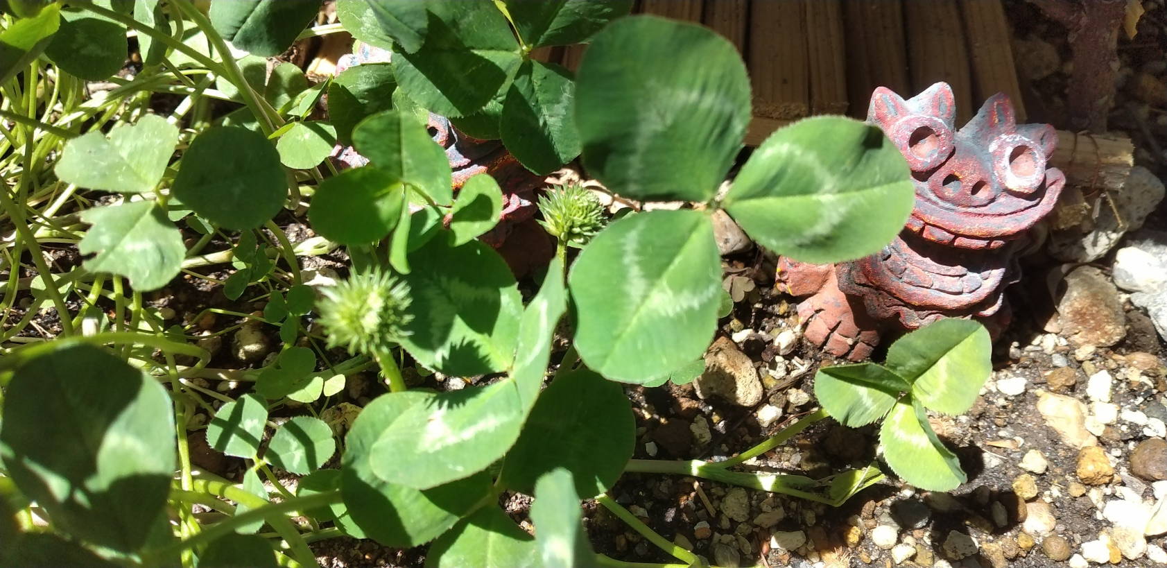 庭のシロツメグサにツボミを発見。葉に隠れていたので今まで気づきませんでした。