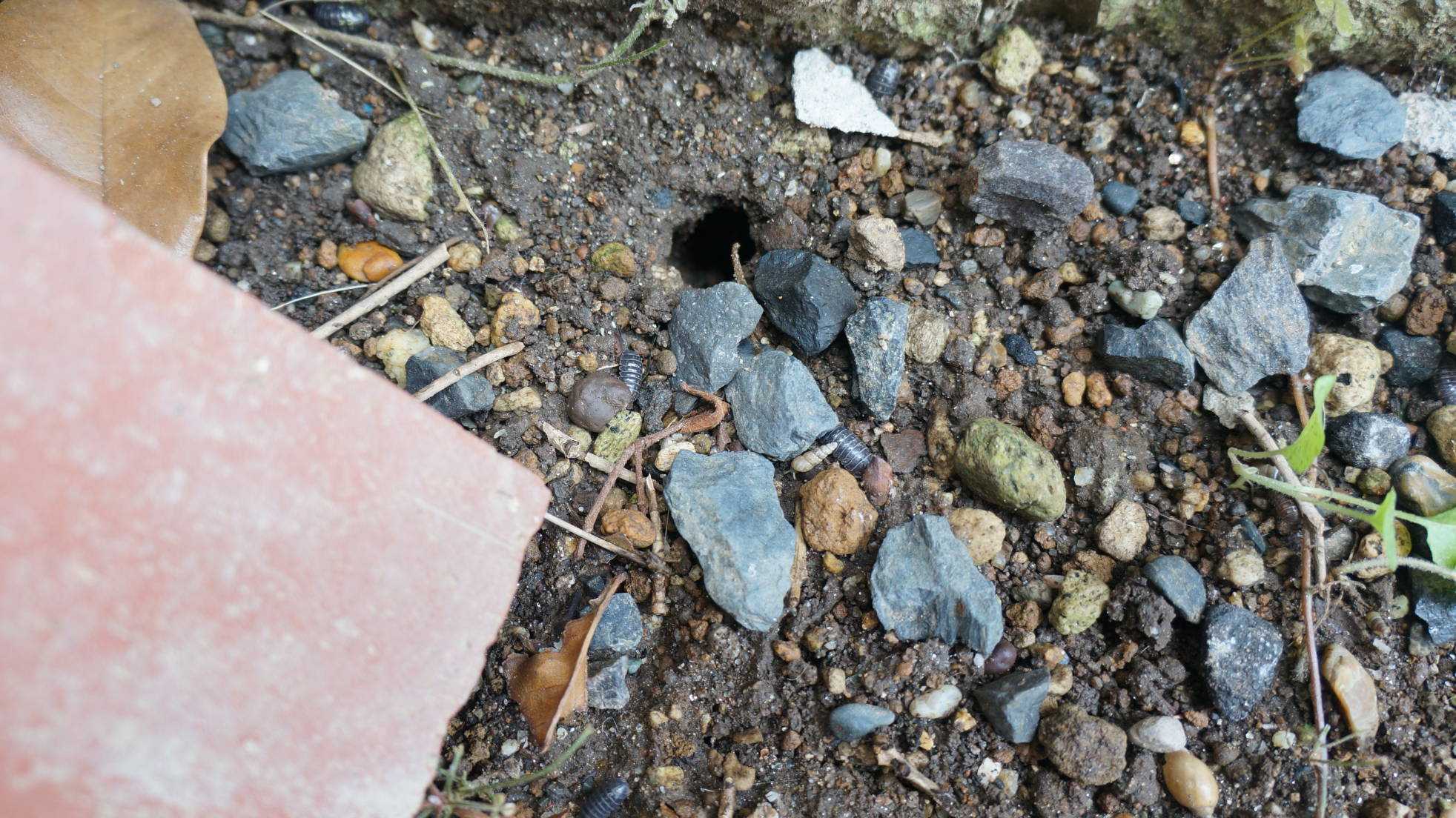庭をよくよく見たらセミが出て来た穴を見つけました。