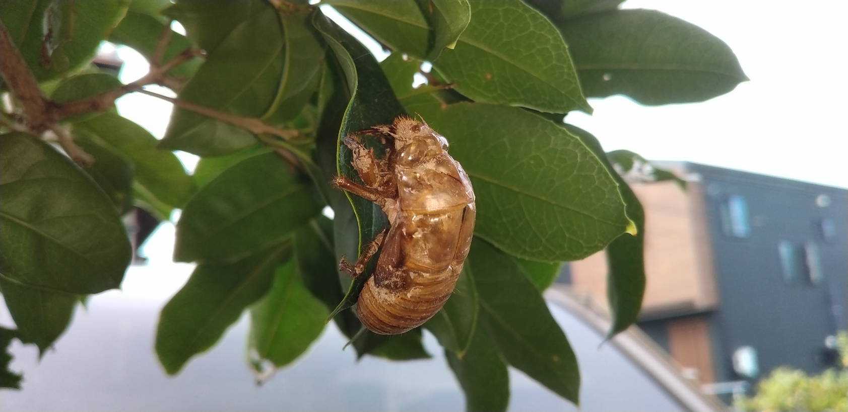 夕方、水を撒いていたら、驚いたセミが2匹どこかに飛んでいきました。