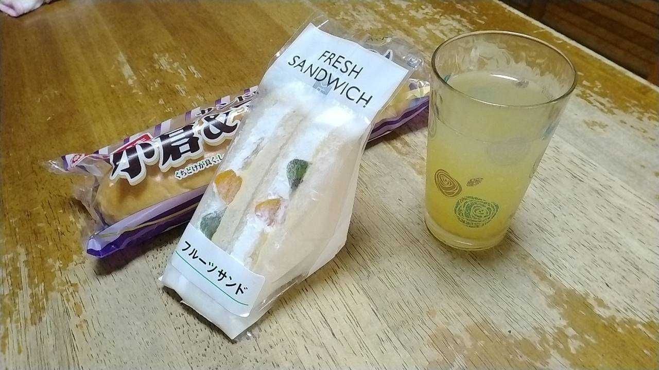土日のお昼がそうめんだったので、今日のお昼はスーパーで買ってきたフルーツサンドです。