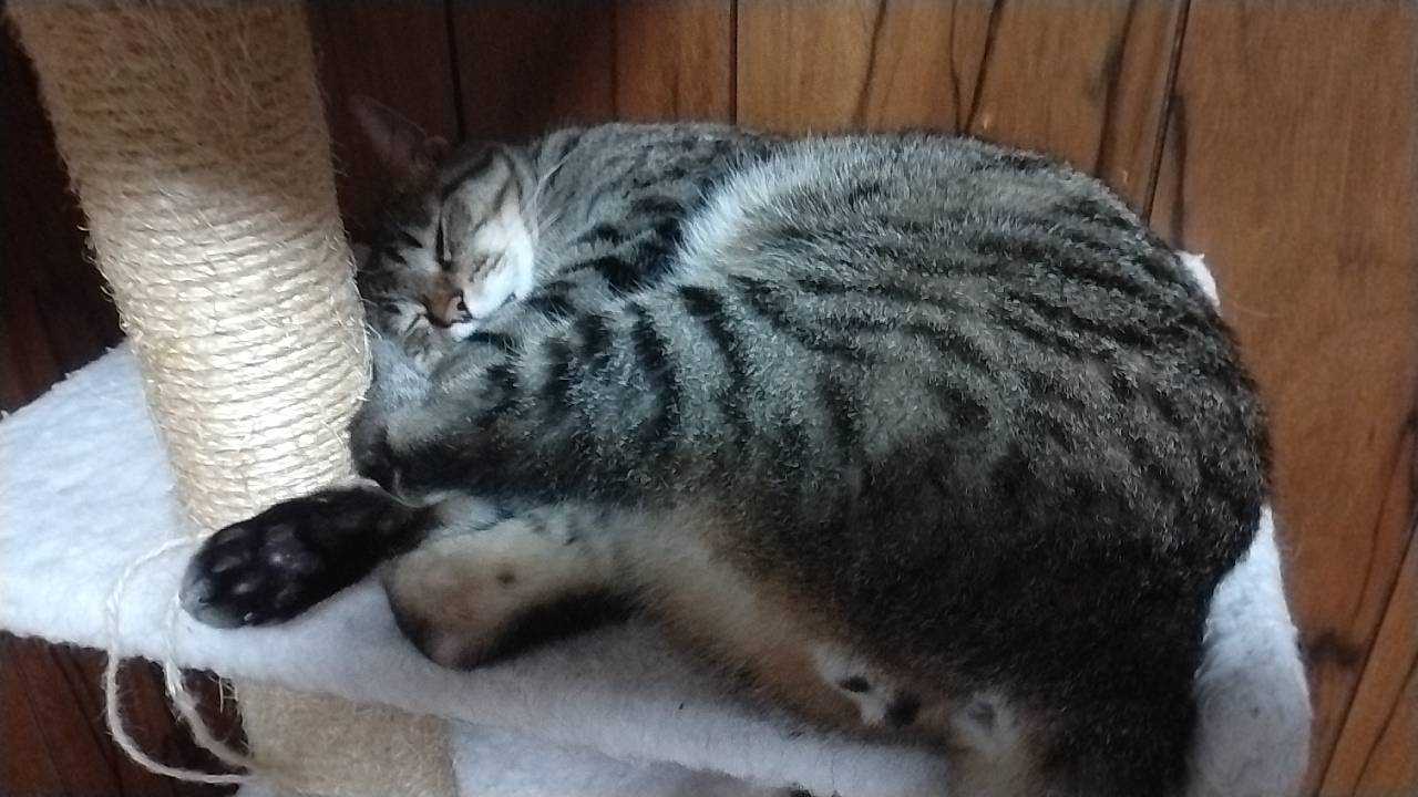 今日も2階の猫タワーで寝ているソラニャン。 室温30℃。