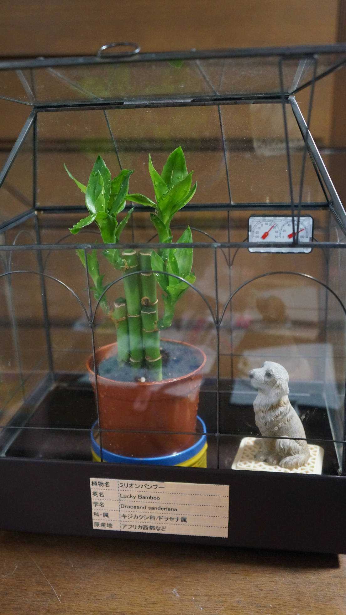 ミニ温室が空き家になってしまったので、ダイソーで新しい観葉植物を買ってきました。