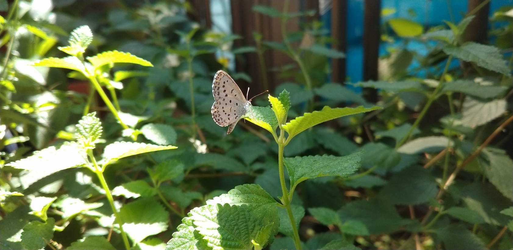 ランタナの葉にとまるシジミチョウ。ヤマトシジミ?