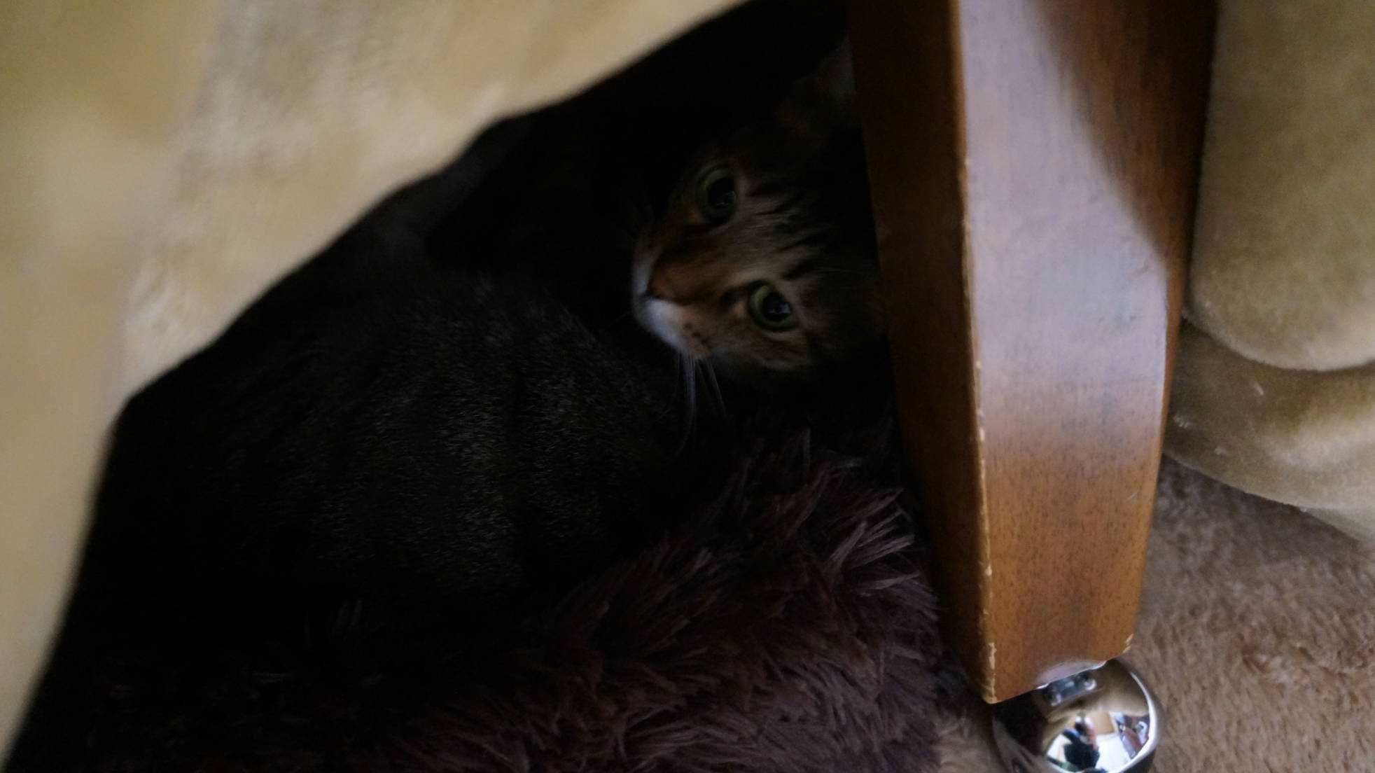 可愛いのでどける訳にもいかず、ソラニャンが降りてくれるまで5分ほど耐えました。