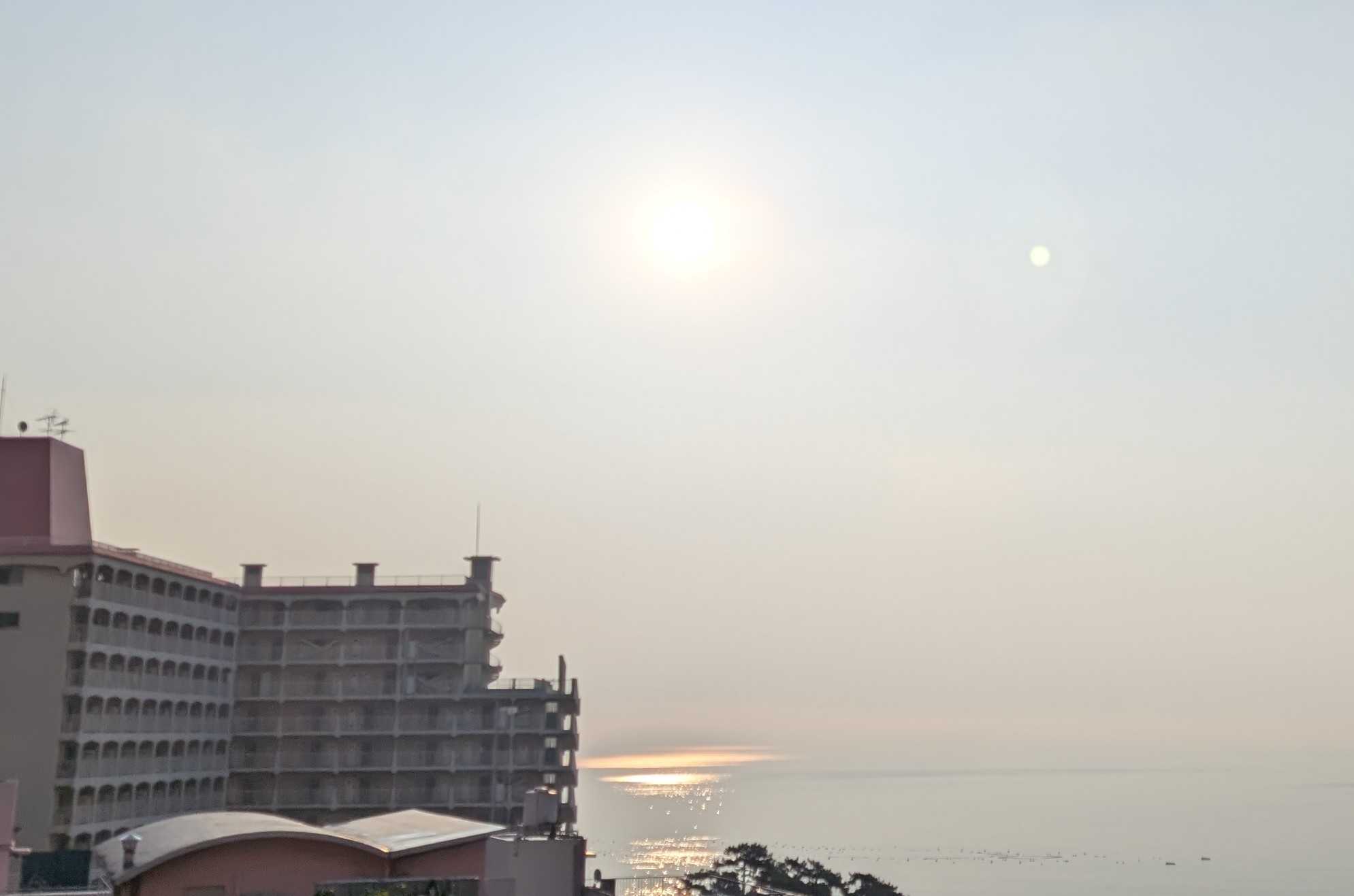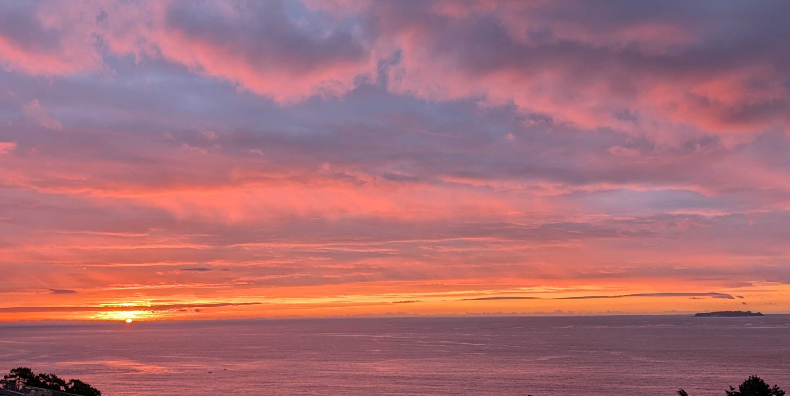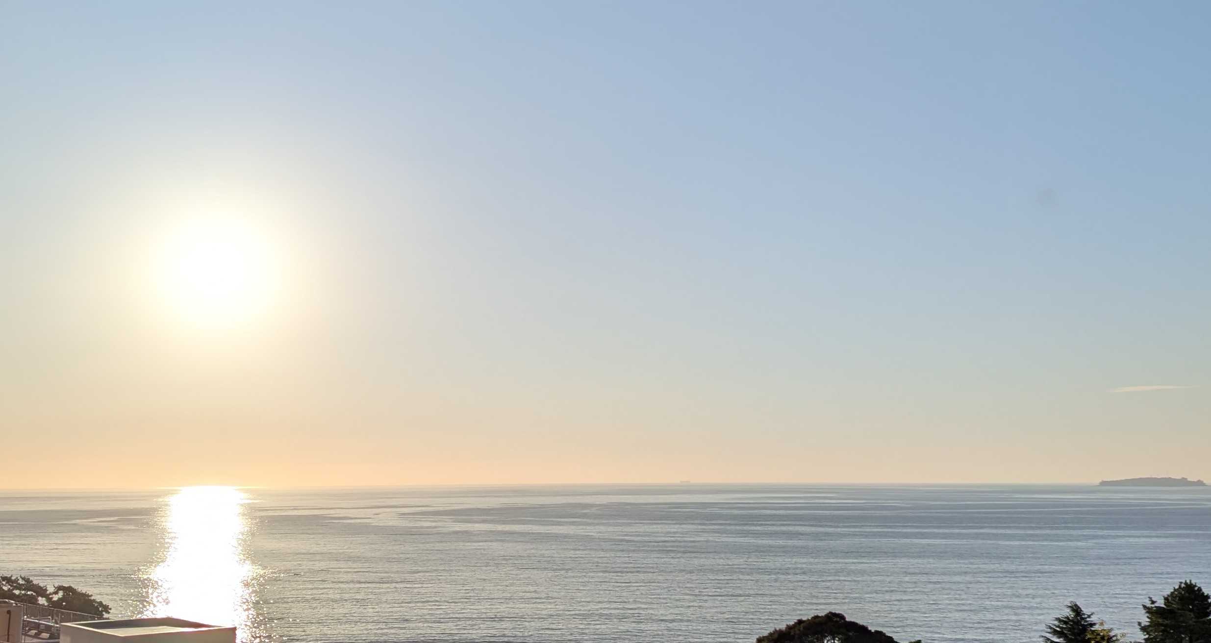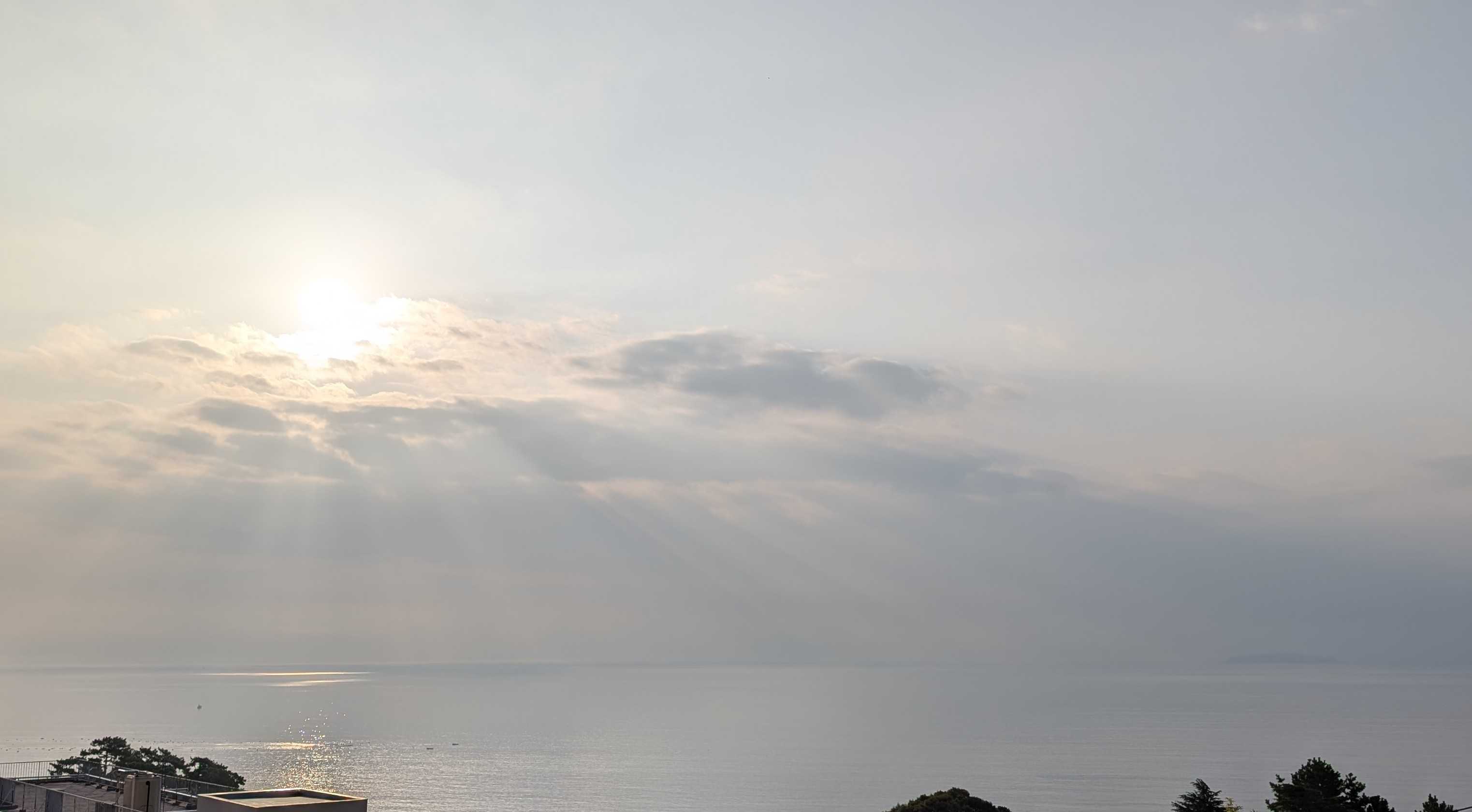 早朝の熱海の空と海です。日の出が遅くなりました。時間が経つにつれ、風が強く湿度も上がってきます。昨日は洗濯日和と思って、あたしはたくさん洗濯して干しました。シャツなどの生地の厚い襟の部分の乾きがイマイチでした。熱中症アラートが出ているくらい暑くても風が強くても湿度が高いと洗濯物の乾きが悪いですね。人の身体にはもっと悪い影響があるような気がします。昨日今日と救急車が国道をよく走ります。これから気温が急に下がるようですね。朝起きたら、心配なんですけど。膝から下が痛くて堪らない!!なんてことにならないように!と言ってどう気をつけたら良いのでしょう?困りましたね予報はただの数字で体感は人それぞれですからね。