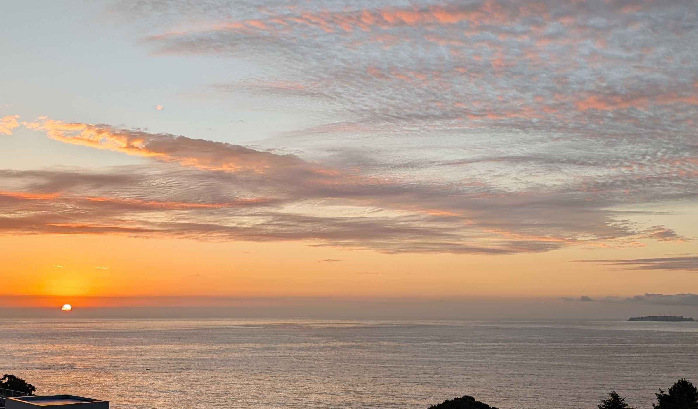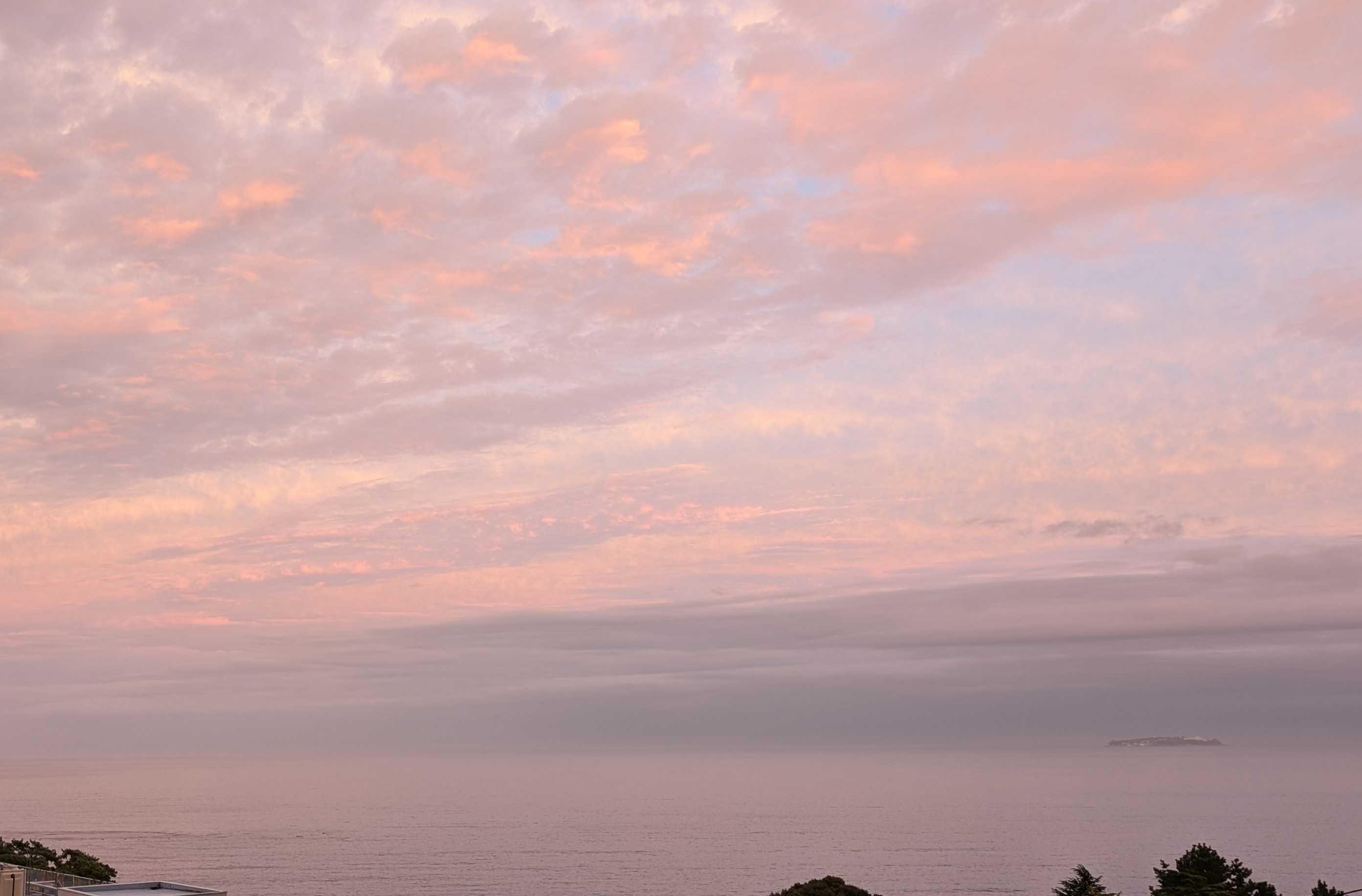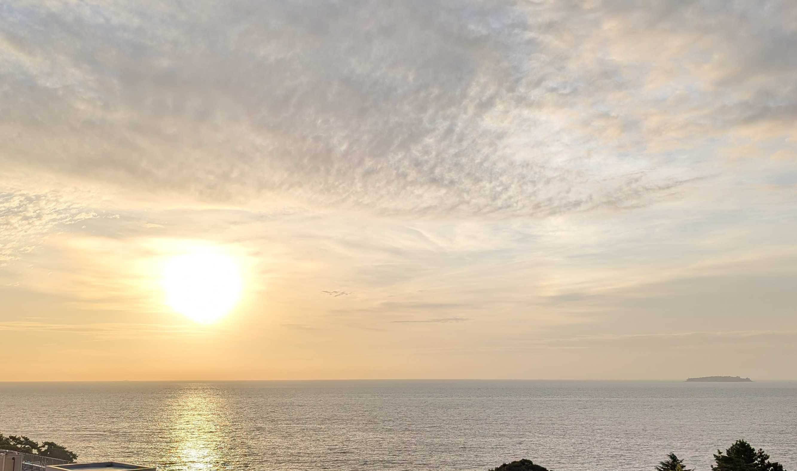 早朝の熱海の空と海です。日の出が遅くなりました。時間が経つにつれ、風が強く湿度も上がってきます。昨日は洗濯日和と思って、あたしはたくさん洗濯して干しました。シャツなどの生地の厚い襟の部分の乾きがイマイチでした。熱中症アラートが出ているくらい暑くても風が強くても湿度が高いと洗濯物の乾きが悪いですね。人の身体にはもっと悪い影響があるような気がします。昨日今日と救急車が国道をよく走ります。これから気温が急に下がるようですね。朝起きたら、心配なんですけど。膝から下が痛くて堪らない!!なんてことにならないように!と言ってどう気をつけたら良いのでしょう?困りましたね予報はただの数字で体感は人それぞれですからね。