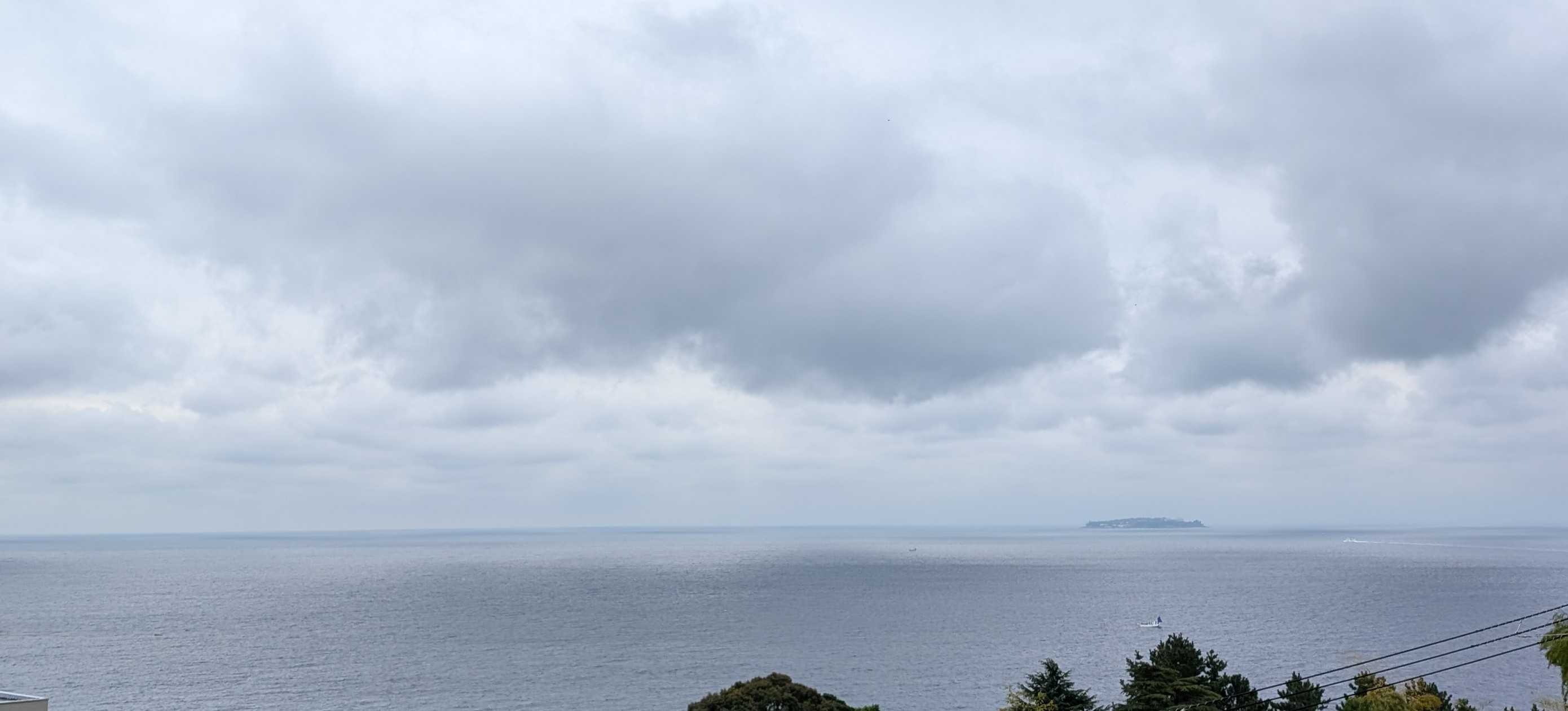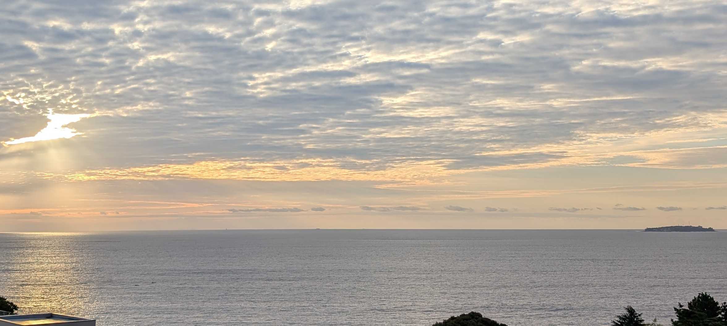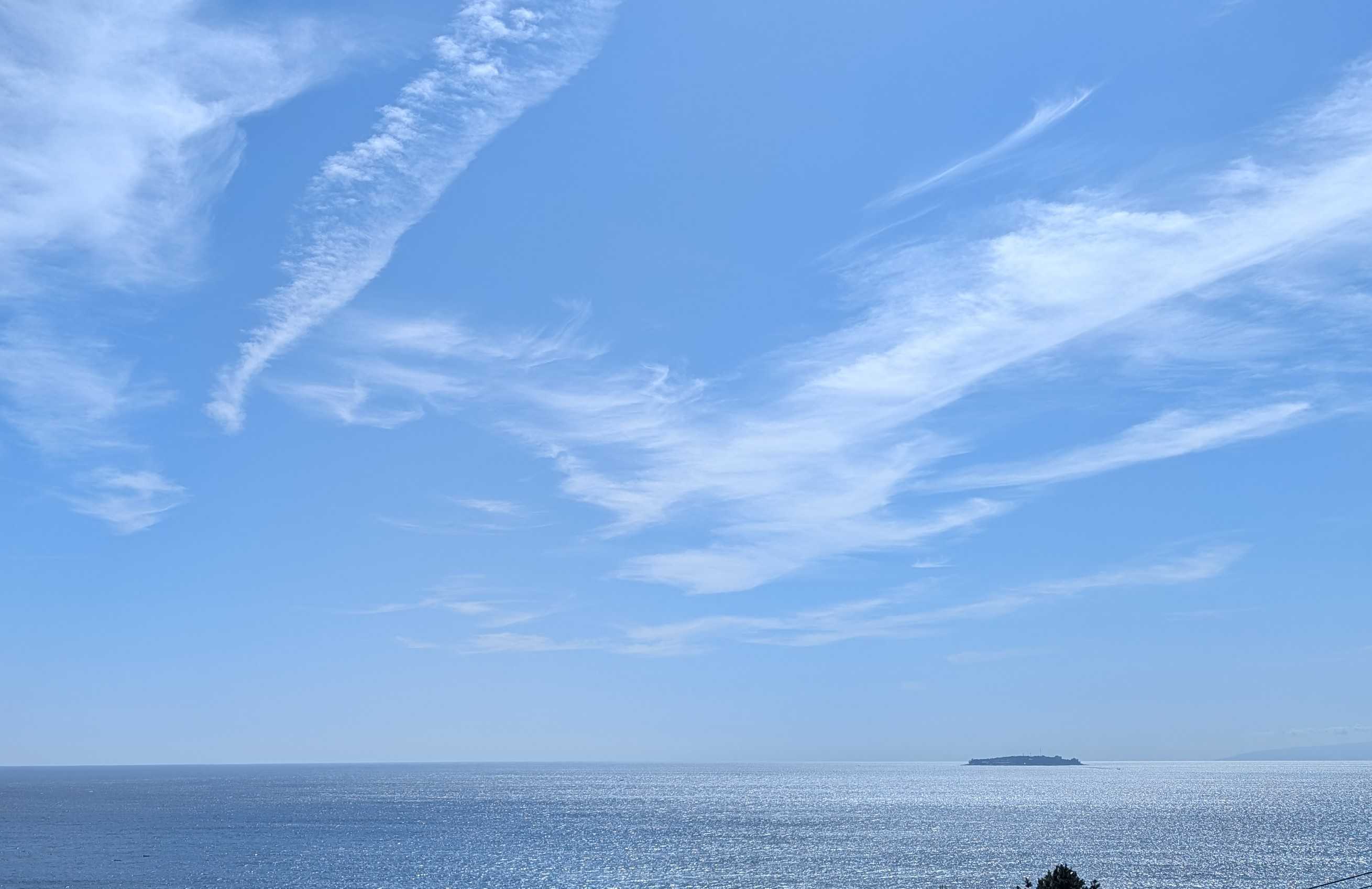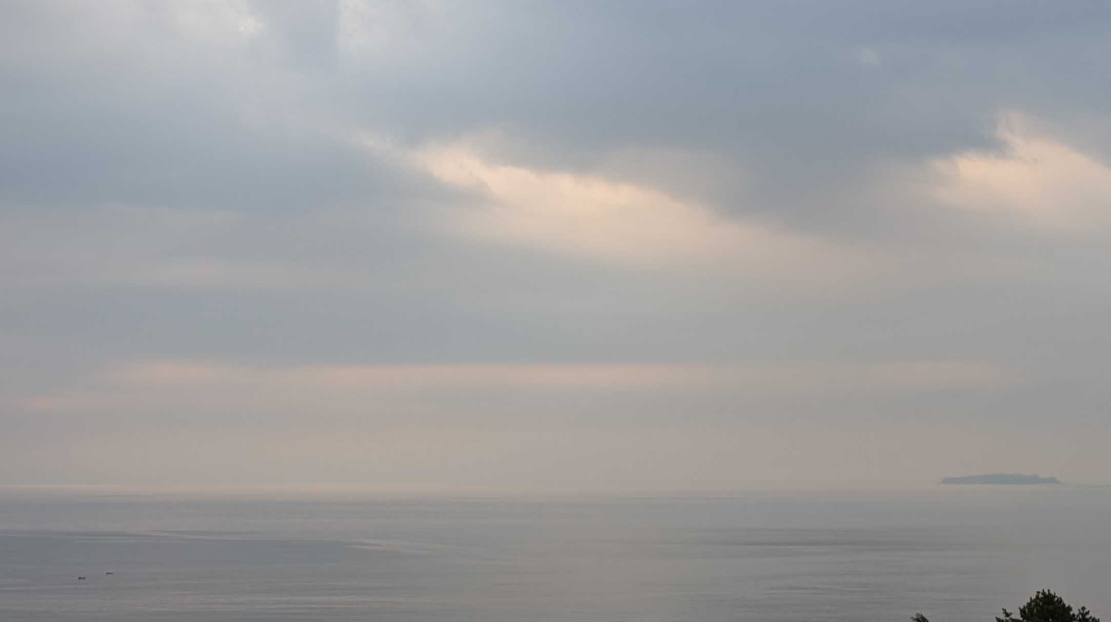 おはようございます。これは我が家のコンロです。今朝、あたしはこのコンロにキャベツのカケラを落として爪楊枝で取ろうとしました。頑張って、頑張って~~受け皿の下の穴から両方ともその下に落ちてしまいましたとても自分ではこれ以上無理!!電源を落とそうにも手が入らなくて、分解なんて出来ません。管理人さんに言ってマンション出入りの電気業者に電話しました。受け皿の下には配線が入っているので、そのまま放置しても良いとか。昨夜の熱海の空と海です。左下にぼんやりと白い船が。海上保安庁の船です。今朝もまだいます。