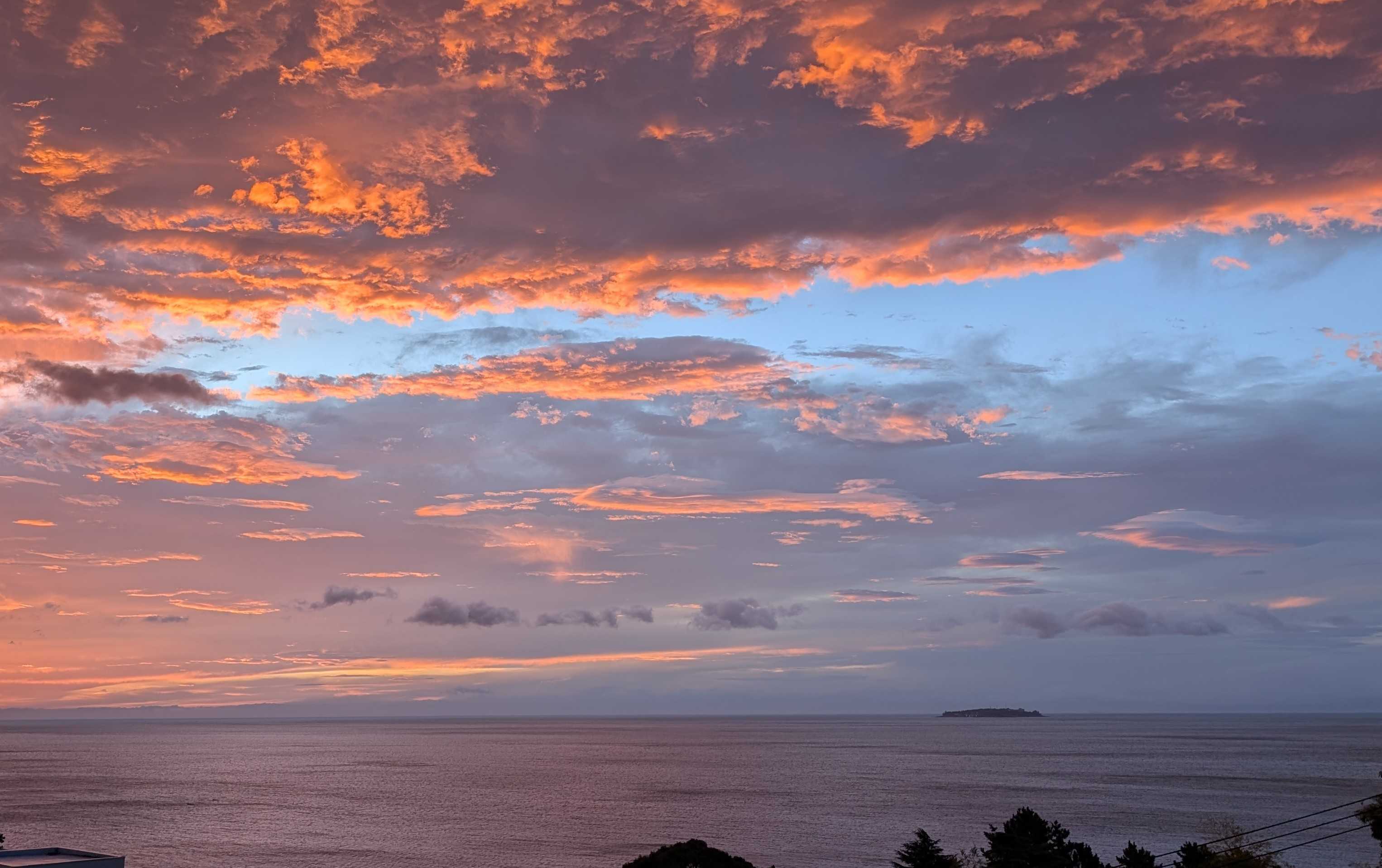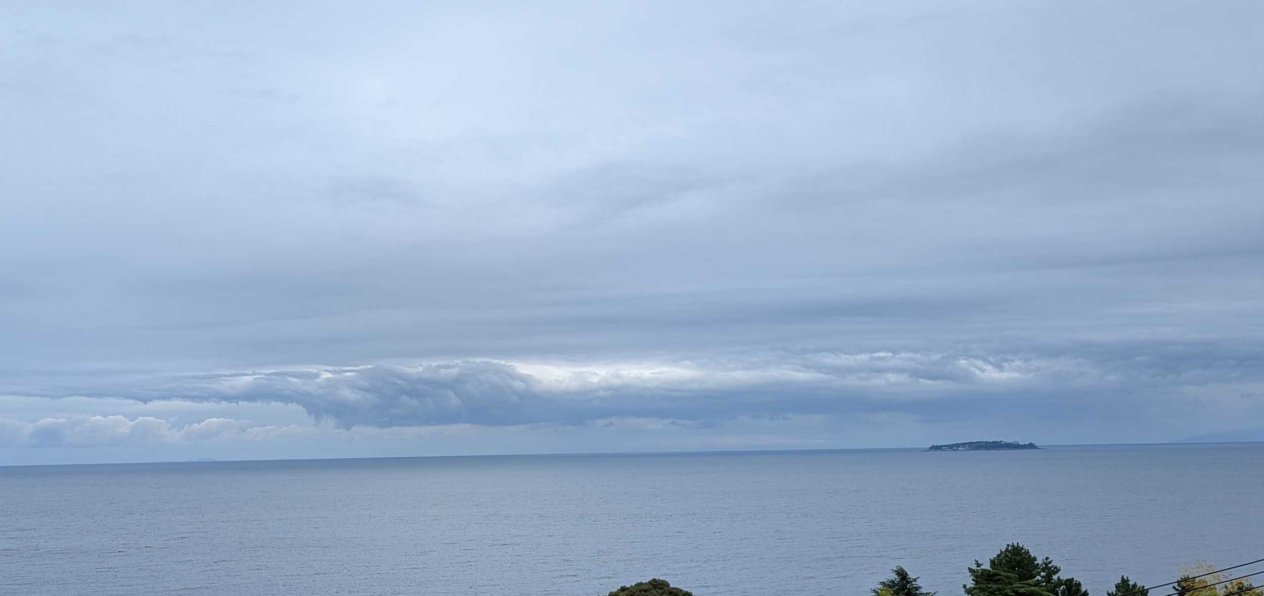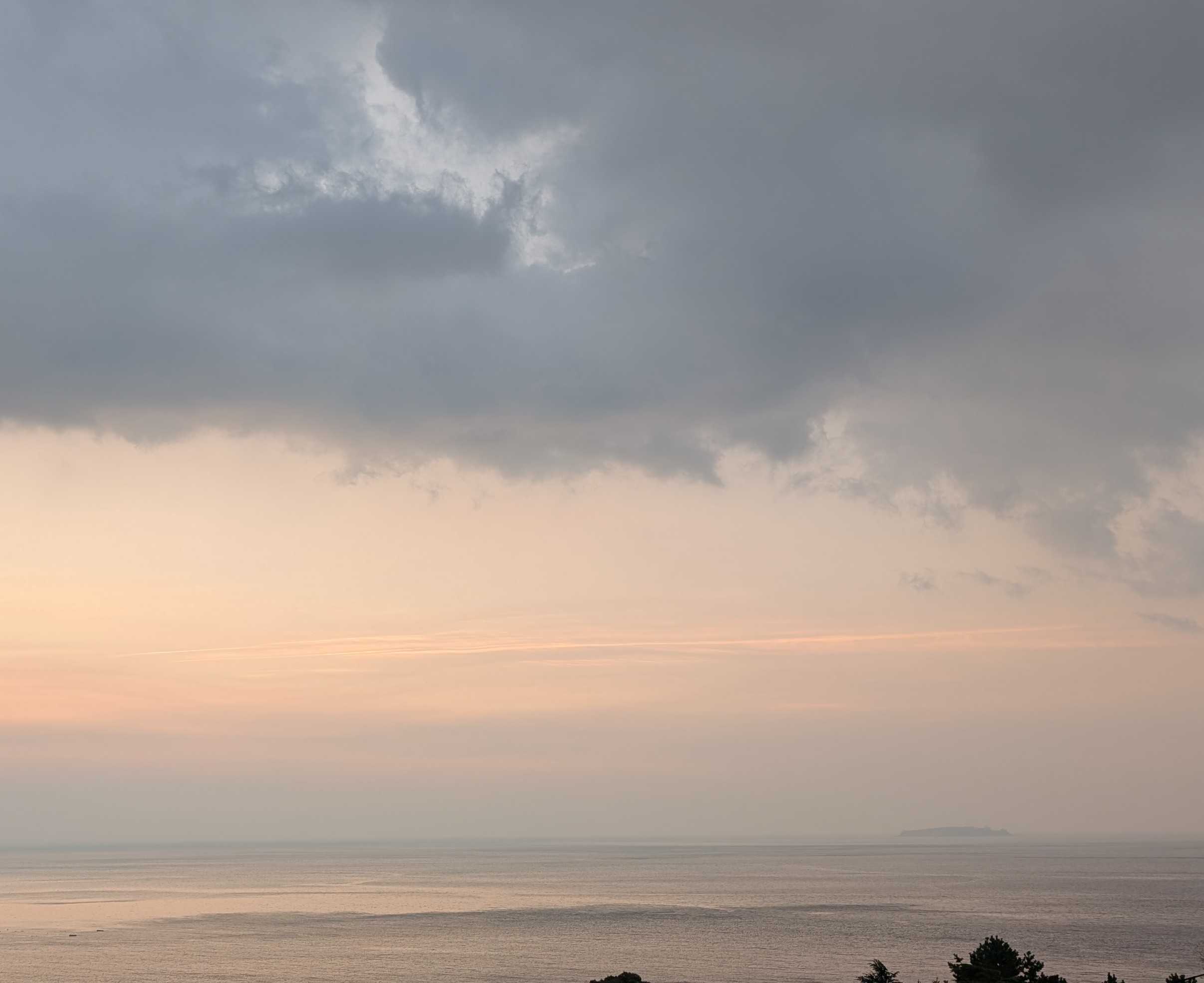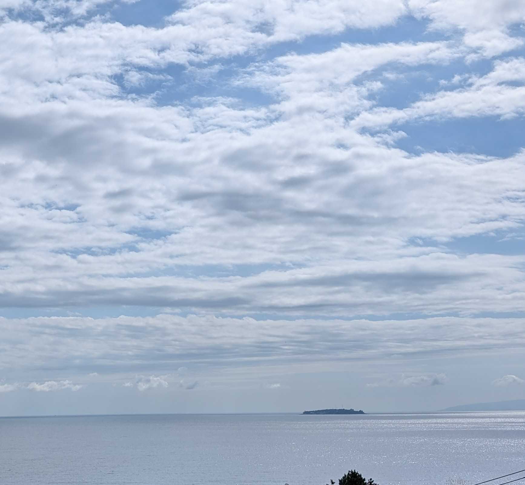 おはようございます。これは我が家のコンロです。今朝、あたしはこのコンロにキャベツのカケラを落として爪楊枝で取ろうとしました。頑張って、頑張って~~受け皿の下の穴から両方ともその下に落ちてしまいましたとても自分ではこれ以上無理!!電源を落とそうにも手が入らなくて、分解なんて出来ません。管理人さんに言ってマンション出入りの電気業者に電話しました。受け皿の下には配線が入っているので、そのまま放置しても良いとか。昨夜の熱海の空と海です。左下にぼんやりと白い船が。海上保安庁の船です。今朝もまだいます。