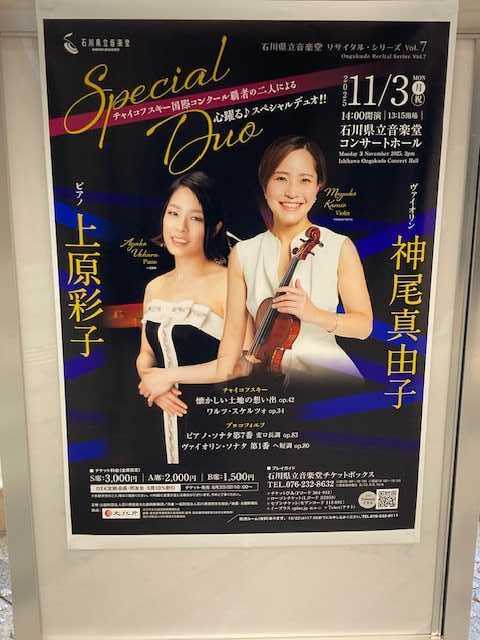 特に後半のプロコフィエフが良かったです。アンコールは言わずもがな。--------------------------------ヴァイオリン 神尾 真由子ピアノ 上原 彩子チャイコフスキー懐かしい土地の想い出 op.42チャイコフスキーワルツ・スケルツォ op.34(休憩)プロコフィエフピアノ・ソナタ 第7番 変ロ長調 op.83プロコフィエフ ヴァイオリン・ソナタ第1番 ヘ短調 op.80~アンコール~ラフマニノフヴォカリーズサラサーテツィゴイネルワイゼン--------------------------------