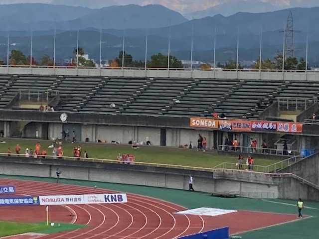 そんなふうには思わなかったのですが、ホームで4ヶ月勝っていなかったそうで。この日は雨風の強い日で、横断幕の掲出と大旗の使用、傘をさしての観戦が禁止されました。屋根のあるところに座席を確保できましたが、久しぶりにポンチョを着ての観戦になりました。前半のうちに佐々木選手が素晴らしい先制ゴールを決めると、客席は大盛り上がり!後半に入って溝口選手が、そして交代で入った末木選手が立て続けにゴールを決めるとさらに盛り上がりました。終盤にCKから失点。相手のPKの場面ではヒヤヒヤしましたが、ポストに当たって決まらず、ほっとしました。3-1での勝利!!! 久しぶりに気持ちの良い試合でした。この節での降格は免れました。富山vs鳥栖の試合結果・データ(明治安田J2リーグ:2025年11月9日)■選評2つの“初得点”を含む3ゴール。富山が残留へ望みをつなぐ富山が11試合ぶりに複数得点を挙げて3-1で快勝し、J2残留への望みをつないだ。開始から富山がハイプレスを仕掛けて鳥栖のビルドアップを阻み、ペースをつかむ。30分、右への大きなサイドチェンジを起点に攻め込んでクロスを入れ、そこから2次攻撃へ。佐々木 陽次がペナルティーエリア手前で縦パスを受けると、鋭いシュートを決めて先制した。今季限りでの現役引退を表明している佐々木 陽次が今季初得点を挙げた。J1昇格プレーオフ進出のために負けられない鳥栖は、後半の立ち上がりから猛攻を仕掛けるが、富山も体を張って守りながらカウンターを繰り出し、“次の1点”を巡る攻防が激しくなる。58分、富山は古川 真人のミドルシュートのこぼれ球をルーキーの溝口 駿が頭で押し込み、Jリーグ初得点を記録。リードを広げて優位に立つと、64分にはゴール前でのボール奪取の流れから、ルーズボールを蹴り込んだ末木 裕也が3点目を決めた。鳥栖は後半から前線に投入された酒井 宣福が縦パスを引き出して数多くのチャンスを作り、78分に右CKから鈴木 大馳がヘディングシュートを決めて追いすがる。85分にはPKを獲得したが、西澤 健太のキックがポストに嫌われて万事休す。富山は何度かあった追加点のチャンスこそ決め切れなかったが、逃げ切って4試合ぶりの勝利を手にした。得点不足に悩まされてきた富山が3得点挙げたのは明治安田J2第4節・磐田戦以来で、今季二度目。ホームでの勝利は6月28日の第21節・千葉戦以来で、雨のスタジアムが歓喜に包まれた。[ 文:赤壁 逸朗 ]先制ゴールを決めた佐々木選手。今シーズンでの引退を発表していますが、最近のパフォーマンスが素晴らしく、「引退を撤回して!」という声がサポーターからあがっています。鳥栖のゴール裏。風が強く、横断幕の掲出と大旗の使用が禁止に。富山のゴール裏。