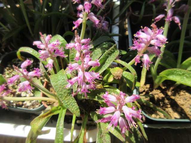 5月のラケナリアはもう休眠寸前でへろへろ。不明、10年以上前に小森谷ナーセリーで買ったものの実生後代。増えすぎて困っているけど、遅咲きなので花を楽しむ前に休眠してしまう。これは何か? 我が家には葉が複数あるものが3種類あるが、その名の通りの「multiforia」じゃないかな。