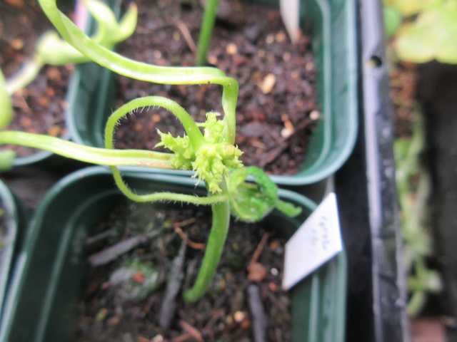 別ブログでやっている変化朝顔の話も少し流星獅子出物の本葉、ほとんど生長点異常のように見えます。柳葉2品種、撫子のような花が咲きます。雑種第2代、父親や母親にそっくりな葉が分離してきます。両親を超える花が出現するか!?