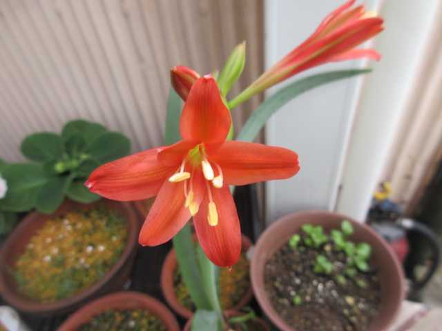 グロキシニア、赤花も咲いたけれど前に咲いていた紫は腐ってしまいました。たぶんあと各1株残るのみキルタンサスのつぼみも色づいてきました。