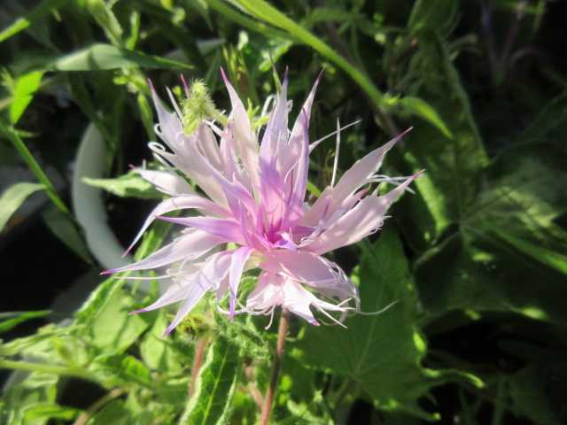 朝日を浴びたリコリス、昨日の夕方はブルーに見えましたが今朝はピンクがかって見えます。インカルナータいま気づいたけれど花弁の先にブルーが残るのですね。今朝の朝顔、立田葉茶吹雪切咲瑠璃獅子咲牡丹? 微妙な牡丹咲です。
